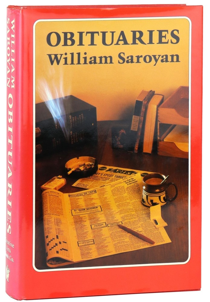 "Obituaries is not about Death, it is about that large mystery that has come out of light and is, of course, called Life. (And the hell with that, too)." Obituaries Author: William Saroyan Title: Obituaries Publication: Berkeley: Creative Arts Book Company, 1979 Description: Very Good + / Near Fine. Berkeley: Creative Arts Book Company, 1979. First Edition. Octavo (23.4 cm), [x], 354pp + 1 photo. Publisher's red and pictorial dust jacket with price intact ($15). Boards full bound in red cloth with gilt stamping on front cover and spine. Decorative endsheets. Dust jacket scuffed lightly but unobtrusively; Spine sunned; Margins and spine ends bumped and creased slightly; Verso toned at joints. Board corners and spine ends lightly bumped with minor rubbing to cloth. Page edges have minor scratches. Pages clean. A Very Good or better copy in Near Fine dust jacket. William Saroyan uses the Necrology register of Variety magazine from 1979 to comment and reflect on the lives of his, now late, contemporaries. Seller ID: 30498 Subject: Essays, First Editions Capitol Hill Books is a used bookstore located on historic Capitol Hill in Washington DC, with three floors of quality used books, first editions, and rare books. [Note: Our online inventory is stored and managed at a separate location from at our brick and mortar shop. If you have a question about an item listed online, please send a direct message here rather than calling the store so that we can make sure someone familiar with the item in question can respond.] Terms Books described only as First Editions are First Printings unless otherwise specified. All items are guaranteed to be as described or they may be returned within 30 days of receipt for a full refund. All orders ship within two business days. Standard mail is USPS Media Mail. Expedited and international shipping are also available (please contact for estimates). We offer combined shipping on multiple orders. This listing was created by Bibliopolis.
