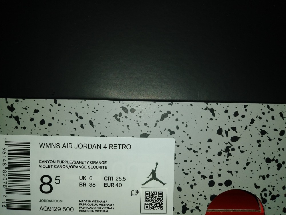 Absolutely love these Air Jordan 4 Retro sneakers! The Canyon Purple and Safety Orange color combo is bold and eye-catching, perfect for making a statement on and off the court. The fit is true to size (US 8.5) and incredibly comfortable, with the leather upper feeling premium and durable. The retro design adds a cool vintage touch while still delivering modern performance. Great cushioning and support make them ideal for basketball or all-day wear. Definitely a must-have for any sneakerhead looking to elevate their style game!
