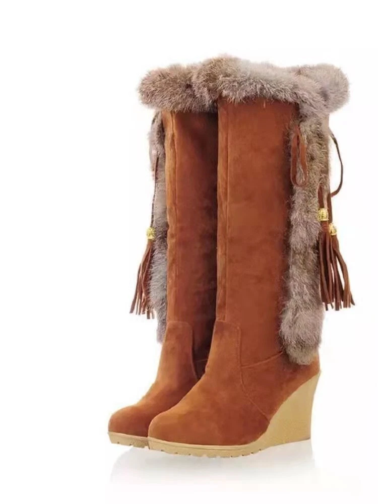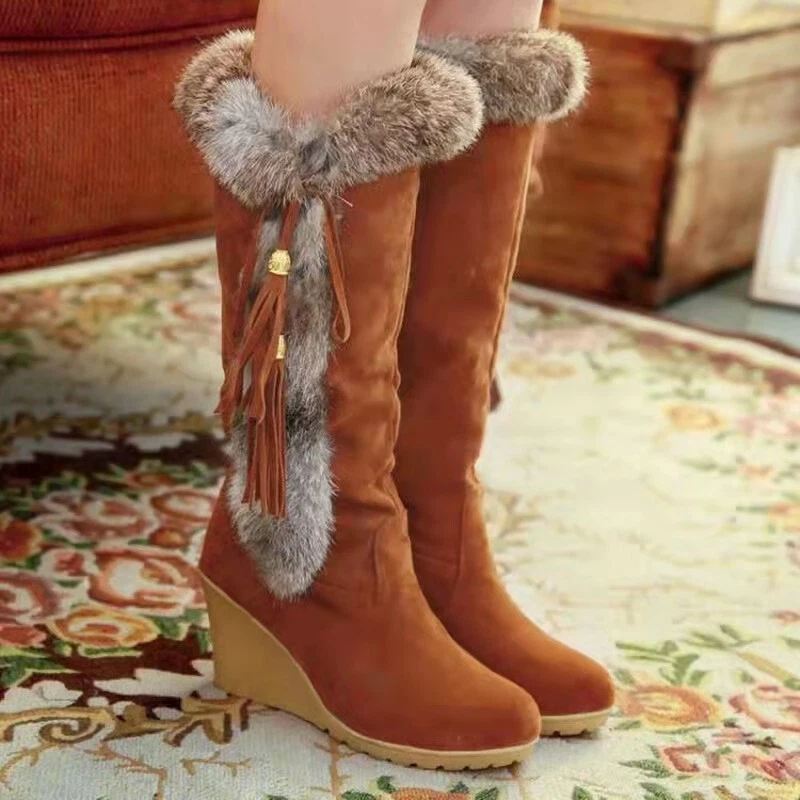 These boots are absolutely gorgeous and so comfortable! The faux suede looks luxurious, and the extra fur lining keeps my feet warm all winter. The wedge heel gives just the right amount of height without sacrificing comfort—perfect for long wear. They fit true to size and arrived sooner than expected. A total steal for the price! Highly recommend for style and coziness.
