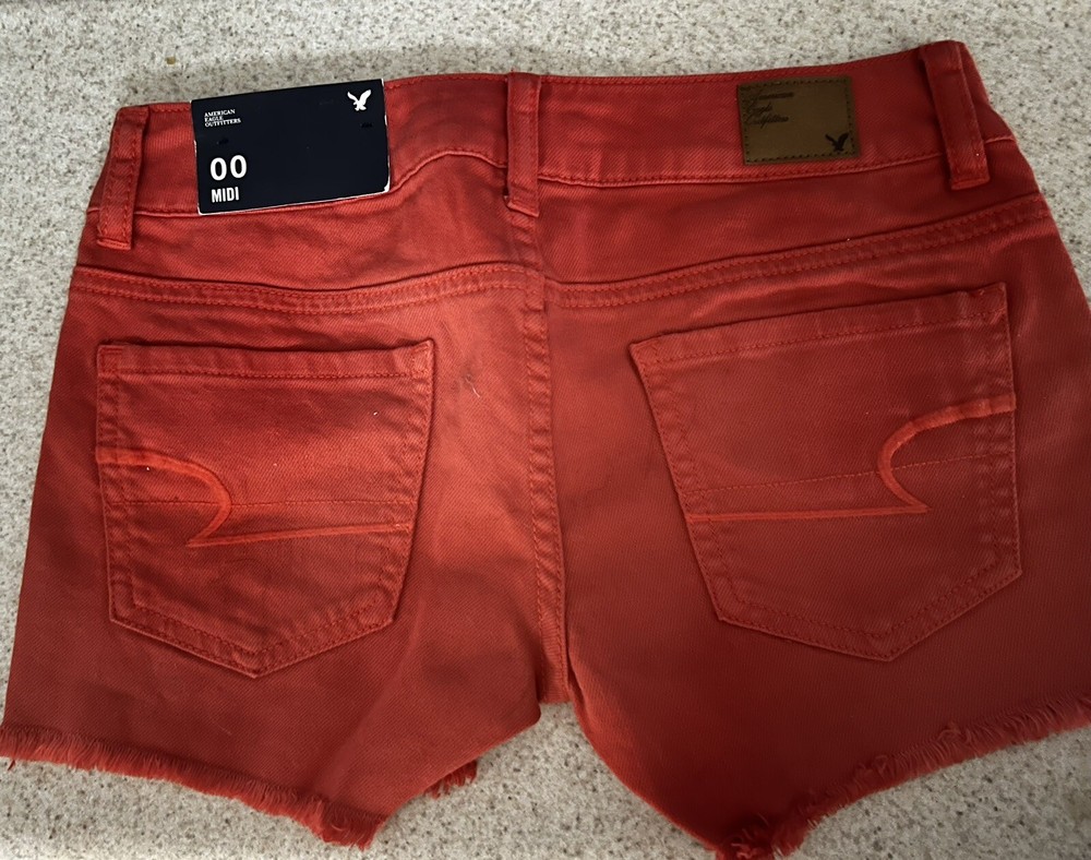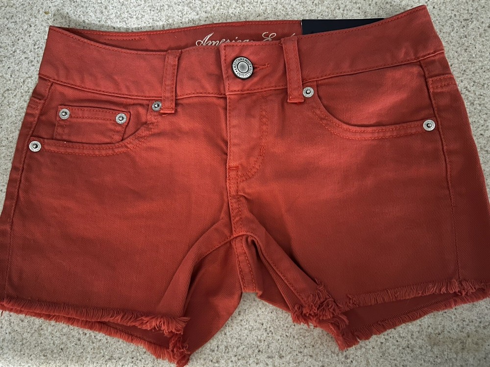 NWT American Eagle Shorts: Size 00 6 inch rise 98% cotton, 2% spandex Orange (lighter then picture shows) Waist measures 14 inch across Retail $39.95