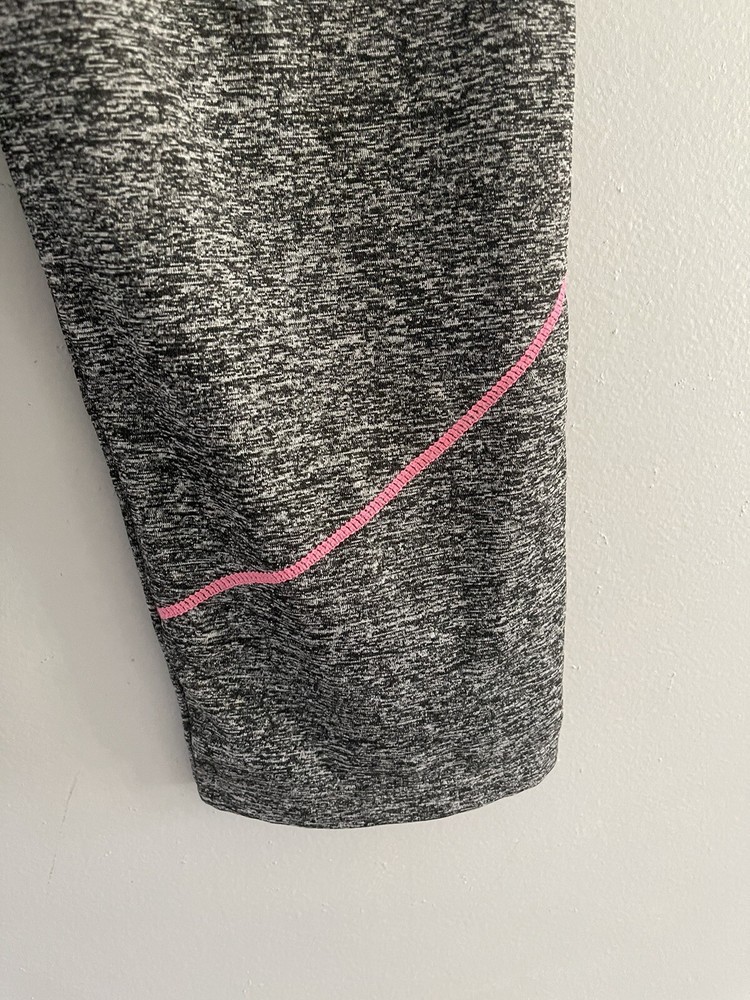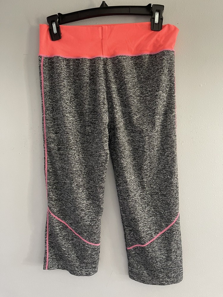 Women’s Gray Neon Orange Athletic Activewear Workout Run Gym Pants Size Medium. Length 27” Waist 28” Rise 12” Inseam 19” Hips 38” Tag says XL but this will fit a Medium. Use measurements above for a proper fit. In great preowned shape and condition. Pink trim.