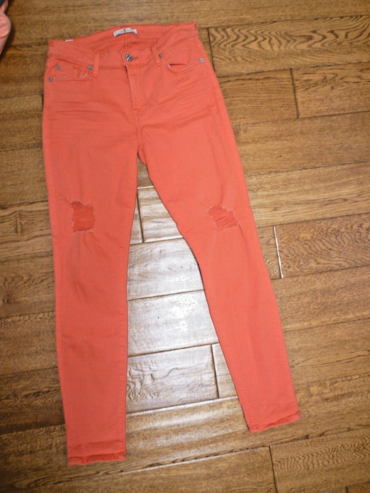 Seven 7 Jeans for all Mankind Jeans Bright Coral Sz 27 PLEASE READ IN FULL PRIOR TO PURCHASING! All Items come from a Smoke Free and Pet Free home! ASK QUESTIONS: When in doubt ask questions through the ?Ask Seller Question? button on the item page prior to purchasing. WE will be happy to provide you more photos and answer questions prior to your purchase. When considering sizes, please refer to the photos and measurements provided and ask for more measurements if needed. For example it is sometimes hard to determine if a garment is a Junior/Girls or Junior/Misses. Again I cannot stress to you the importance of asking questions and requesting more photos if needed prior to purchase. COLORS: All monitors, phones, I pads and all other devices out there do not display colors the same! If you have a question about the color shown or described please ask questions through the ?Ask Seller Question? button on the item page. ANTIQUE VS VINTAGE VS ORIGINAL: We are not experts in antique, vintage or original items. Most of these items have been in our possession for over 40 years and were originally owned by our parents and grandparents who have long passed. Please ask questions through the ?Ask Seller Question? button on the item page. WE DO NOT ACCEPT REFUNDS: Please note you are protected under the Ebay policies, however, We Do Not accept refunds unless an item is grossly misrepresented. If you are not satisfied, please contact us through the ?Ask Seller Question? button on the item page prior to contacting Ebay. We will do our best to make it right. FEEDBACK: Our policy is to wait for the Buyer?s feedback before leaving our Positive feedback. This allows us to make sure the buyer is satisfied with the purchase. Please do not leave negative feedback before contacting us. We would like the opportunity to make things right. THANK YOU: Thank you for shopping with us. We are using this site to sell personal items that we are no longer in need of and many of our mothers and grandmothers vintage and antique things that we do not have space for and now realize that the kids will not want most of it. We realize that we cannot keep it all and that there are others that might enjoy some of these treasures. We do our best to describe and photograph the items as completely and honestly as we can but we are not experts and sometimes we do not know all that there is to know about an item. If you have any information that will benefit our listings please let us know through the ?Ask Seller Question? button on the item page.