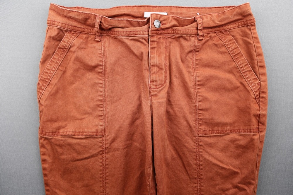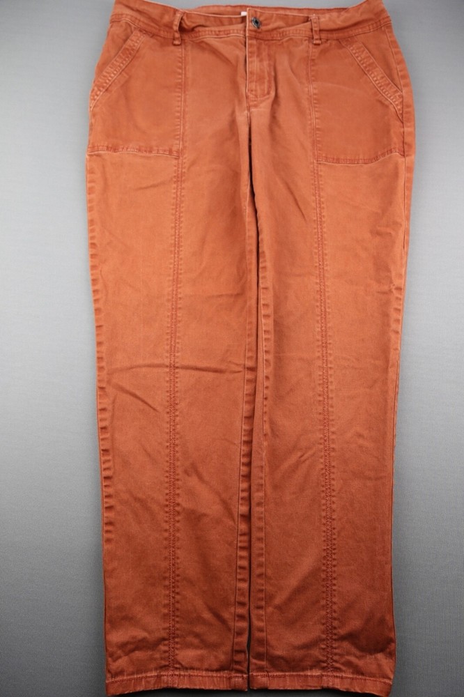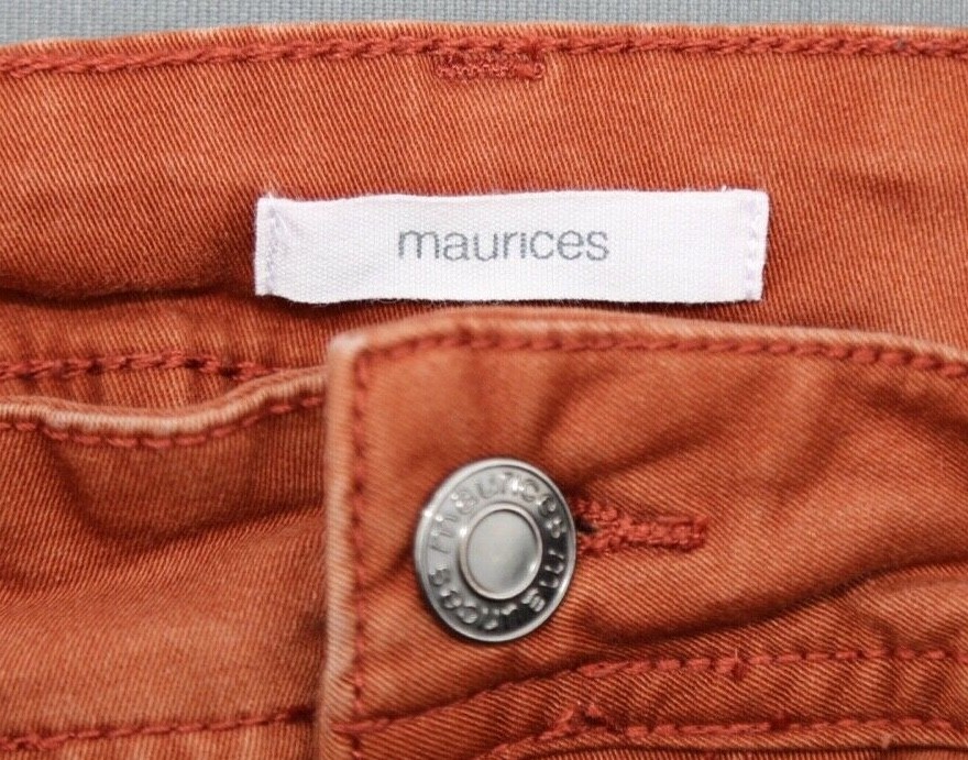 Women's Maurices Skinny Trouser Front Seam Mid Rise Stretch Orange Size 12 (33x27) Zipper Fly ACTUAL MEASUREMENTS (Measurements are taken of the item lying flat and pulled tight without stretching. All measurements are approximate and in inches): Waist ( Measured from side to side and multiplied times 2 ): 33 Inseam ( Measured from bottom of crouch to end of pants leg): 27 Hip (Measured at the base of the zipper from side to side and multiplied times 2) : 41 Thigh (Measured from bottom of the crouch to outside leg seam ) : 11 Rise ( Measured from waistline down to bottom of crouch) : 9 Leg Opening ( M easured from one side of the cuff to the other ): 6.5 CONDITION REPORT: (Noticeable damage or stains will normally be listed here in the Condition Report and close up pictures will normally be provided of the affected area. All pictures are of the actual product so please take a close look at all the pictures.) Good condition RETURNS: If you are unsatisfied with your purchase for any reason you may return your item within the time specified in the listing for a full refund less the original shipping fees. The original shipping fees are not refundable and the buyer is responsible for the return shipping cost. If you need to return an item please start the return through the eBay returns process. INTERNATIONAL SHIPPING: Items are normally shipped USPS priority or USPS first class but may vary at the seller's discretion. The buyer is responsible for all import duties, taxes, and other related charges; these fees are not included in the items price or shipping charges paid to the seller. Please check with your customs office to research any additional fees imposed by customs prior to buying or bidding on an item. These charges normally will be collected by the shipping company at time of pickup. Please do not confuse custom fees for additional shipping charges. Items cannot be declared at values below the selling price and items cannot be marked as gifts due to regulations. Please note that international deliveries can exceed a month or longer due to customs. THANKS FOR LOOKING!
