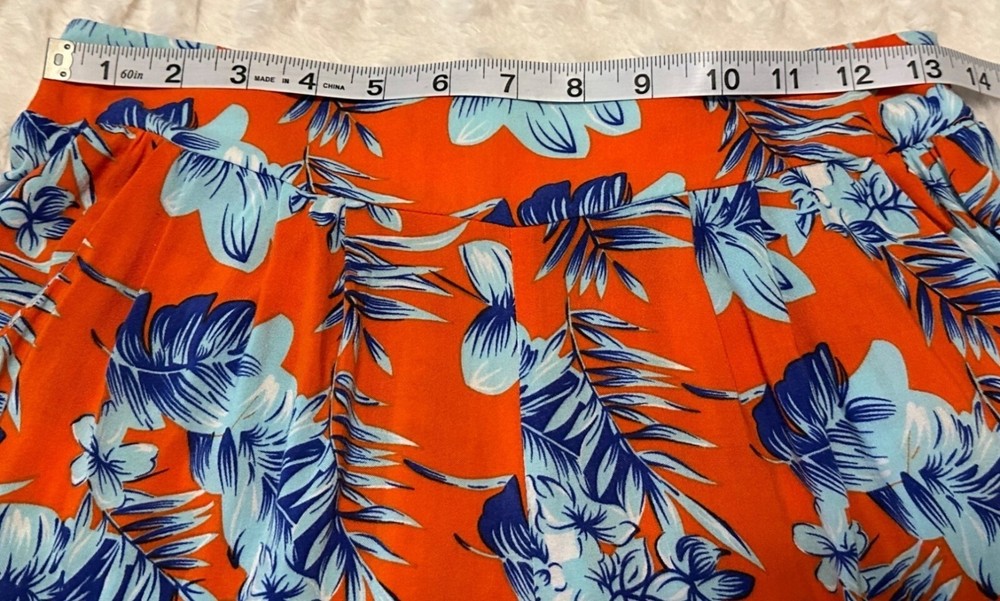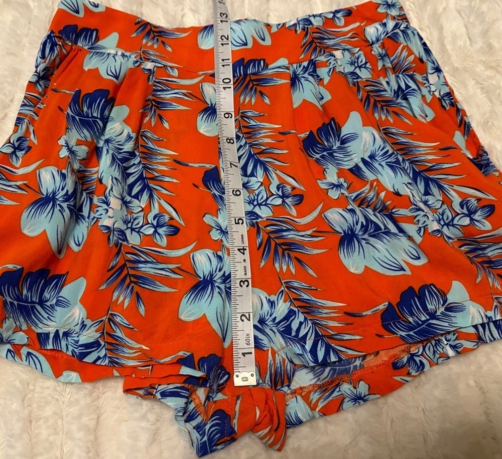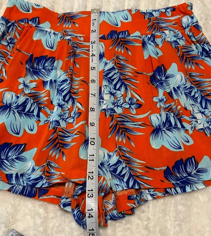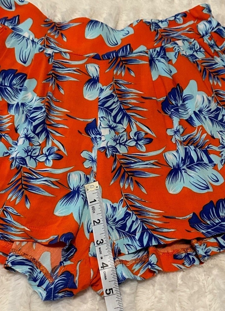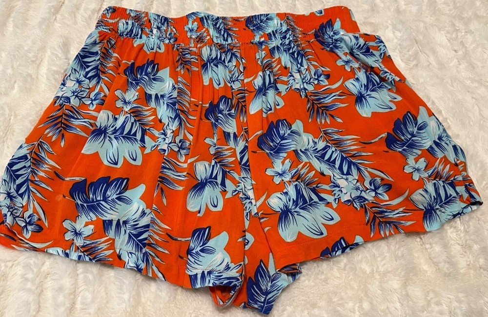 Condition: USED/Good Condition/Pre-owned. Note: The brand name, size, and material tags are missing, but they feel like a polyester blend. The waist size reflects a size XS/S (27 1/2-28 inches) but has some elastic stretch. The cover photos reflect the actual color of these women's shorts. Please look at the pictures of measurements and other details in this listing. Brand: Unknown Style: Shorts Closure: Pull-on Fabric type: Blended Length: Short Seasons: Summer Pattern: Tropical, Floral Colors: Orange, Blue, White Material: Polyester Blend Occasion: Casual, Social Accents: N/A Garment care: Machine washable Theme: Tropical Place made: China Personalization Instructions: See garment care instructions with photo. Other features: Tropical Print, Stretch Shorts, High-Rise, Polyester Blend, Women's Size XS/S Measurements Inseam: 5" Length: 15" Waist size: about 28" Rise: 13" Weight: 3.5 oz. Features: • Shorts Size: Womens XS/S Condition: Pre-Owned Good
