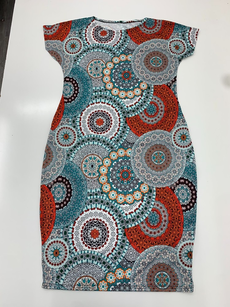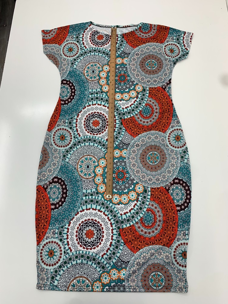 Womens Orange White Blue Circle Geometric Print Dress Size XXL New Condition See Pics BS79/24Q25BH16