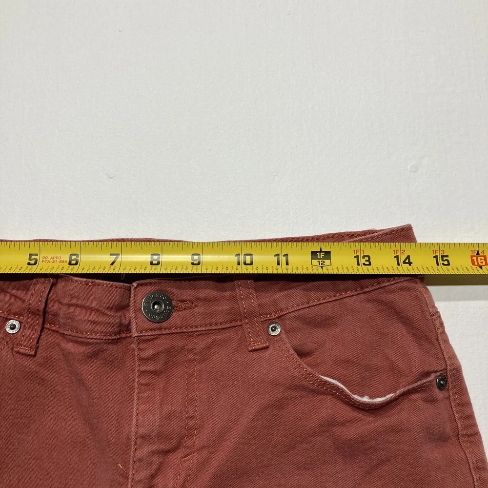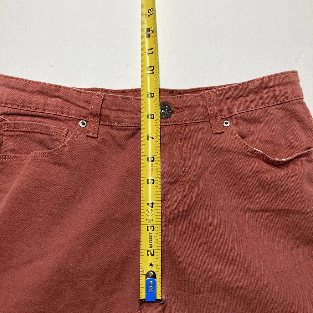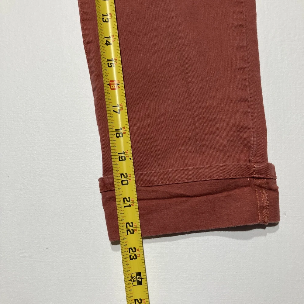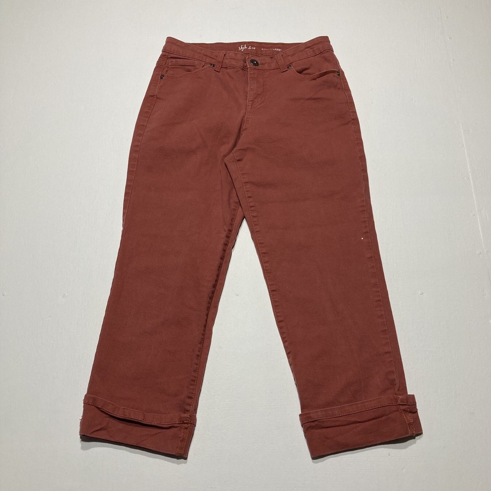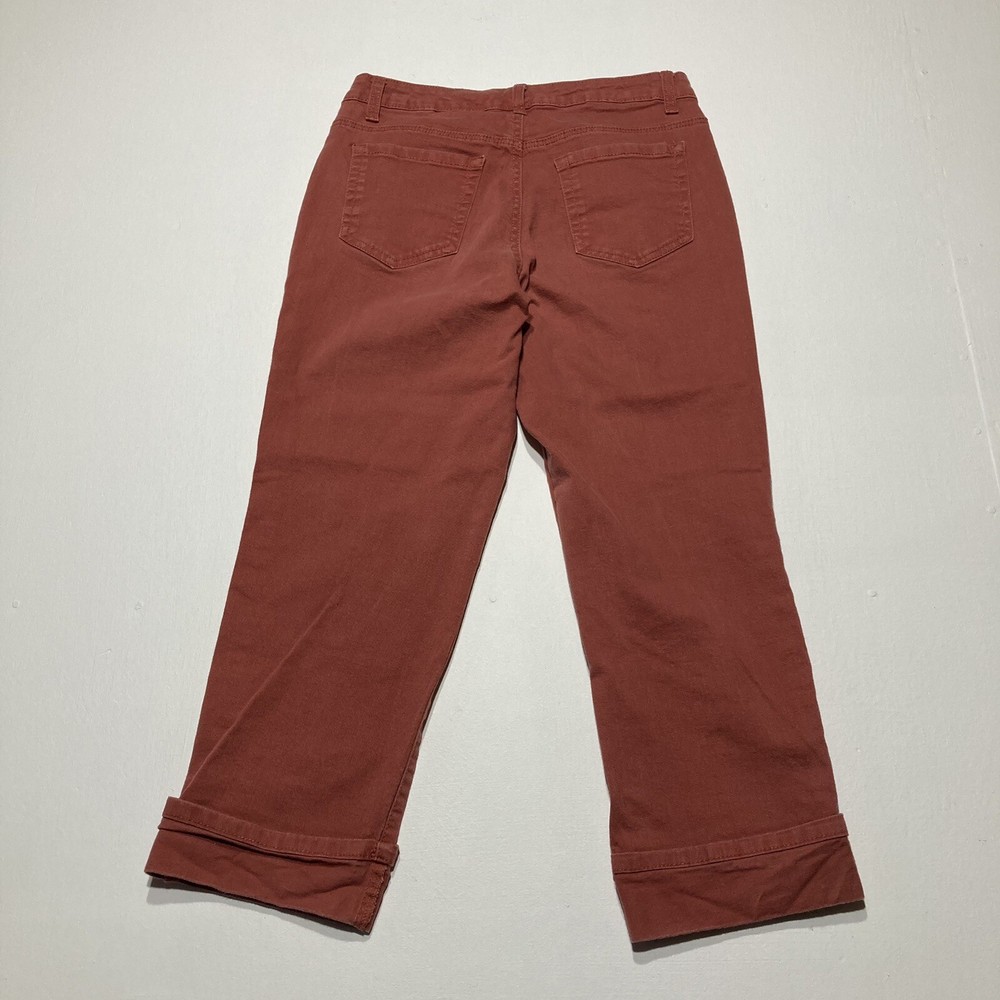 Upgrade your wardrobe with these stylish and comfortable capri pants from Style & Co. These pants are perfect for women who want to look fashionable and feel comfortable at the same time. The pants are made of a blend of spandex and cotton material that ensures maximum comfort and flexibility. The design features a mid-rise waist that sits comfortably on the hips, and a flat front that slims the tummy area. These pants come in a beautiful orange color, perfect for adding a pop of color to your outfit. The pants have a straight leg style and an inseam of 22.5 inches, making them perfect for any occasion. The closure is a combination of a zip and button, ensuring a secure fit every time. These pants are perfect for women who prefer a regular size fit and a stylish design. The pants are pre-owned but are in excellent condition, making them perfect for those who want to enjoy the benefits of a high-quality pair of pants without breaking the bank.