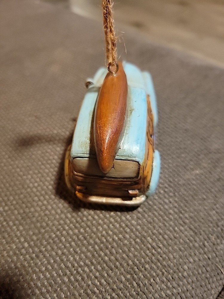 Add a touch of creativity to your Christmas tree or table decor with this Wood Panel Wagon Car Canoe Christmas Ornament from Creative Co-Op. The blue rectangular car ornament, made of resin, features a car with a unique shape and size of 4" x 2 1/4". The ornament is perfect for those who love cars and want to add a special touch to their holiday decor. This wooden panel car ornament is a great addition to any collection and makes for a perfect gift. The item comes with a set that includes a car and is perfect for adults who love to decorate their Christmas tree or table. Get this special ornament today and add a touch of creativity to your holiday decor!