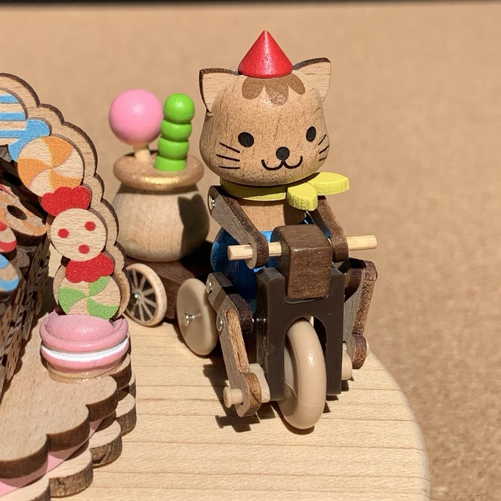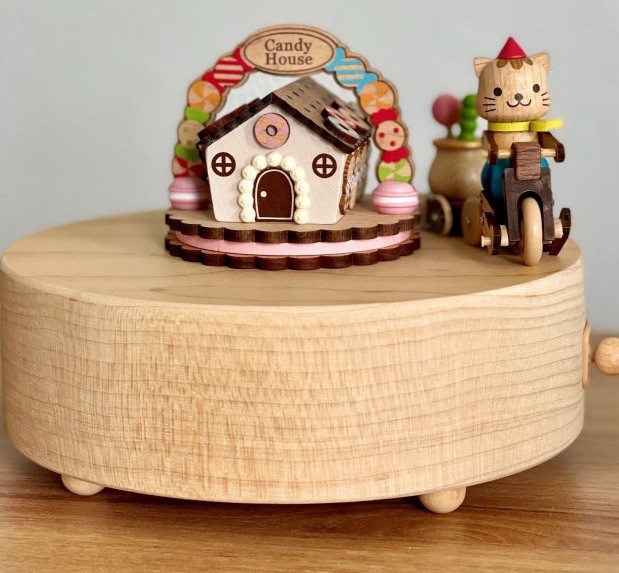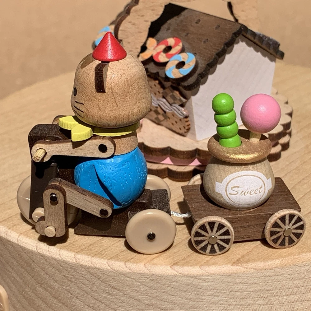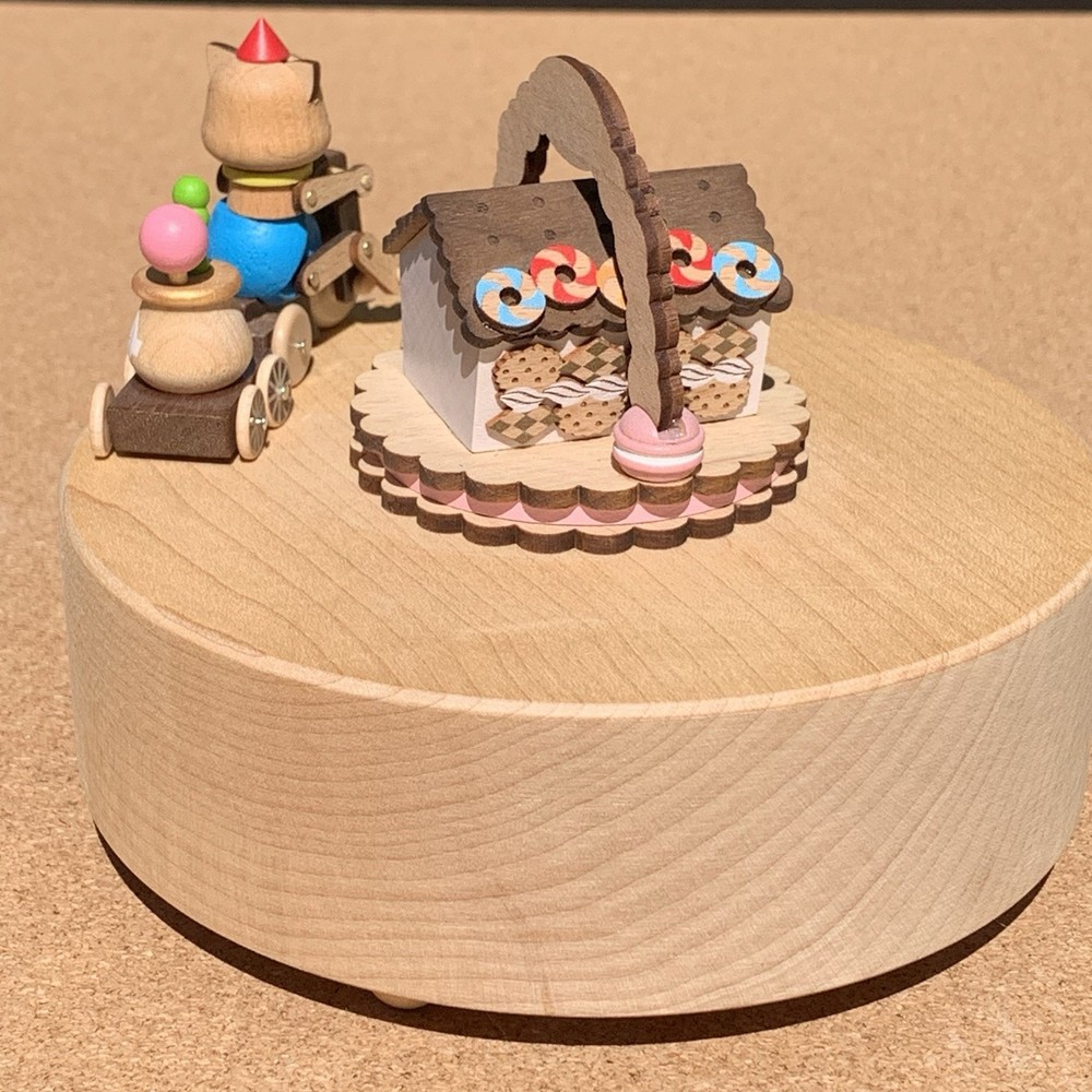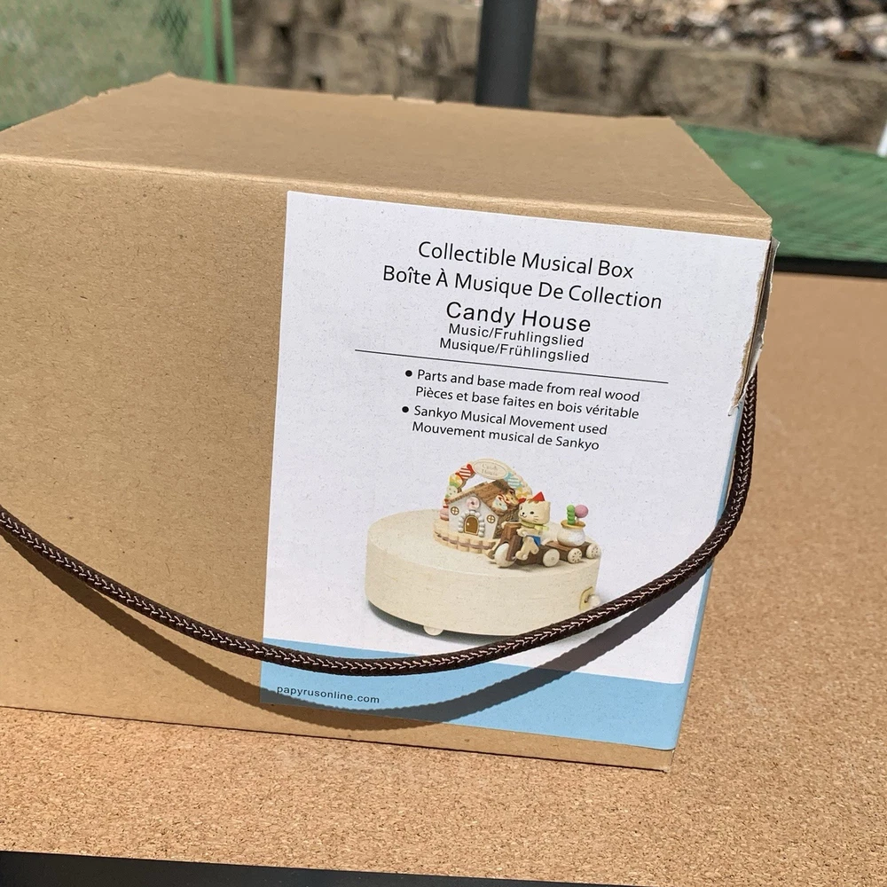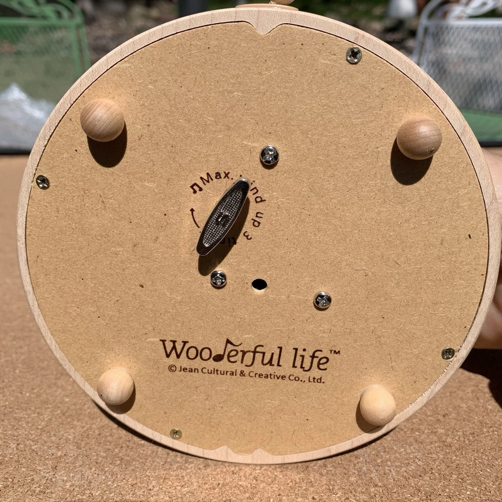 Adorable adorable adorable Box has shelf wear. Has original manufacturing sticker. New in worn box. Wooderful Life music boxes are so charming! Windup the bottom, place the train in place. An inner magnet will come around and catch the train, guiding the train around the little candy shop. 5.5” diameter