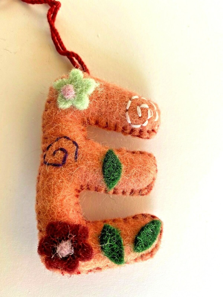 Creative Co-Op Embroidered & Appliqued Initial Letter "E " Approximate size is 3 to 4"....see picture Last picture shows all letters available in category "Felt Ornaments" Please look carefully at all pictures and ask any questions before buying as there are NO RETURNS Shipping Discount : When purchasing ANY items in my store, PLEASE do the following: Put each item you want to purchase in your cart by clicking "Add to Cart". When you are finished adding all the items you wish to purchase, click on the Cart at the top of the page. Then click on "Go to Checkout" and the shipping discount will be automatically applied. You are only charged full price shipping on one item in your cart (the one with the highest shipping cost if different kinds of items are purchased) If you have any problems, please let me know. For this particular item, Shipping cost for first one is $4.25. Any additional items in this listing will have a shipping cost of $0.25 when purchased and paid for in the same order at the same time . This is automatically calculated at check out.