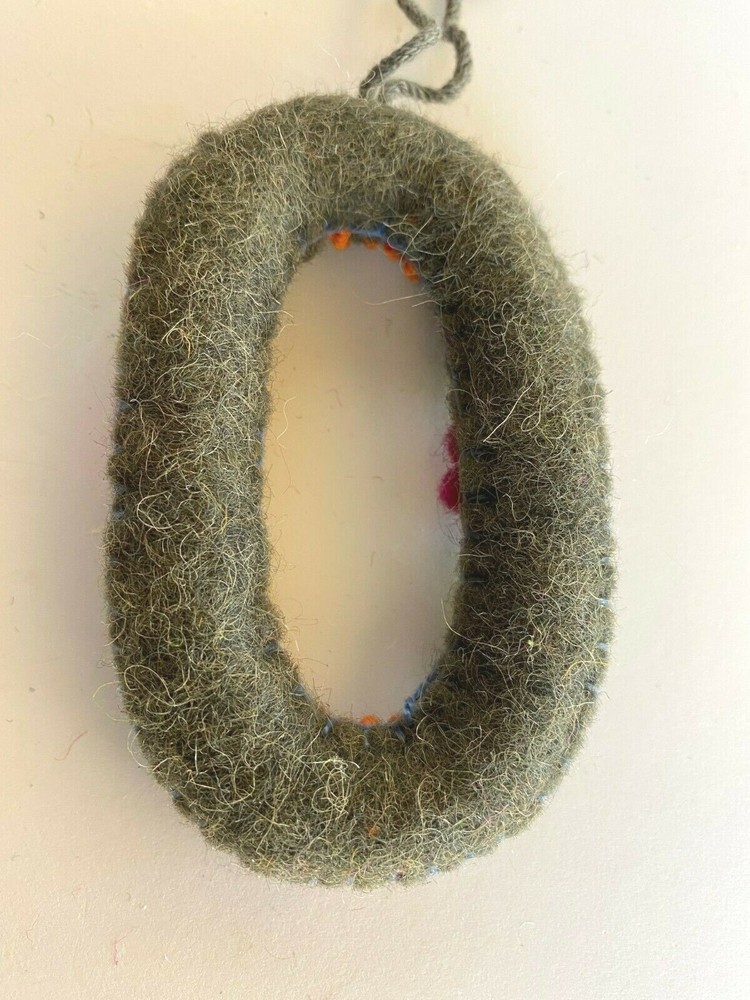 Boho Embroidered Wool Felt Letter O Initial Ornament