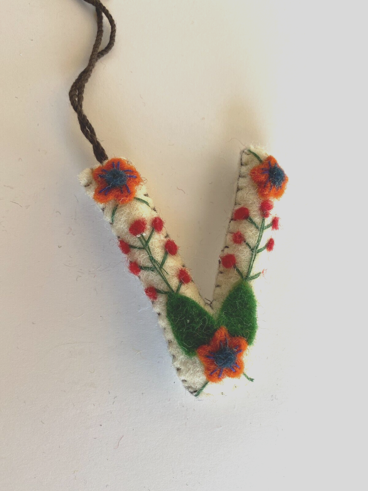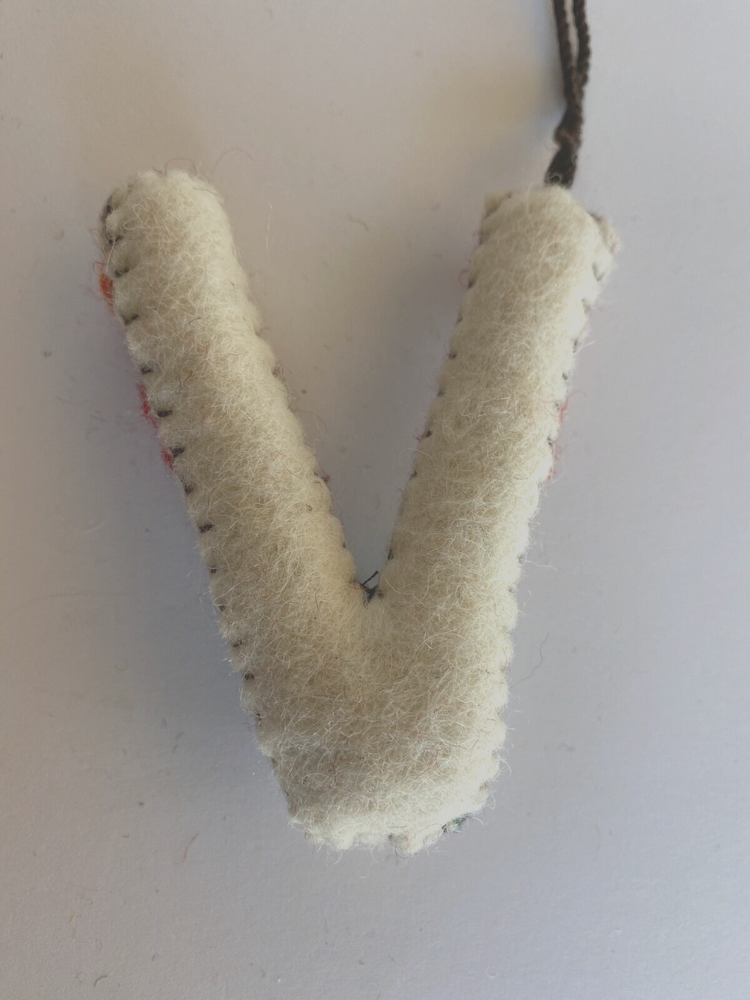 Creative Co-Op Embroidered & Appliqued Initial Letter "V " Approximate size is 3 to 4"....see picture Last picture shows all letters available in category "Felt Ornaments" Please look carefully at all pictures and ask any questions before buying as there are NO RETURNS Shipping Discount : When purchasing ANY items in my store, PLEASE do the following: Put each item you want to purchase in your cart by clicking "Add to Cart". When you are finished adding all the items you wish to purchase, click on the Cart at the top of the page. Then click on "Go to Checkout" and the shipping discount will be automatically applied. You are only charged full price shipping on one item in your cart (the one with the highest shipping cost if different kinds of items are purchased) If you have any problems, please let me know. For this particular item, Shipping cost for first one is $4.25. Any additional items in this listing will have a shipping cost of $0.25 when purchased and paid for in the same order at the same time . This is automatically calculated at check out.
