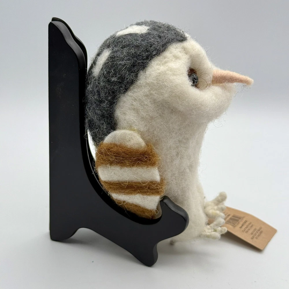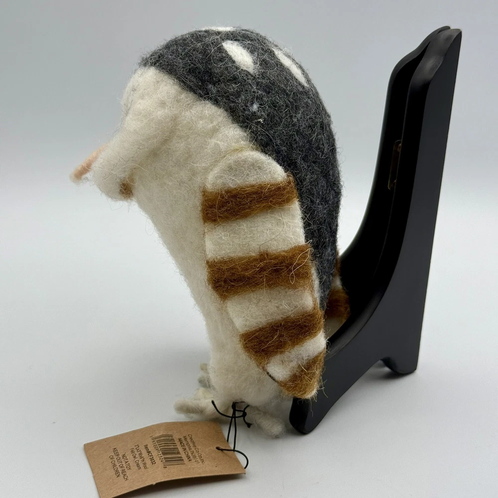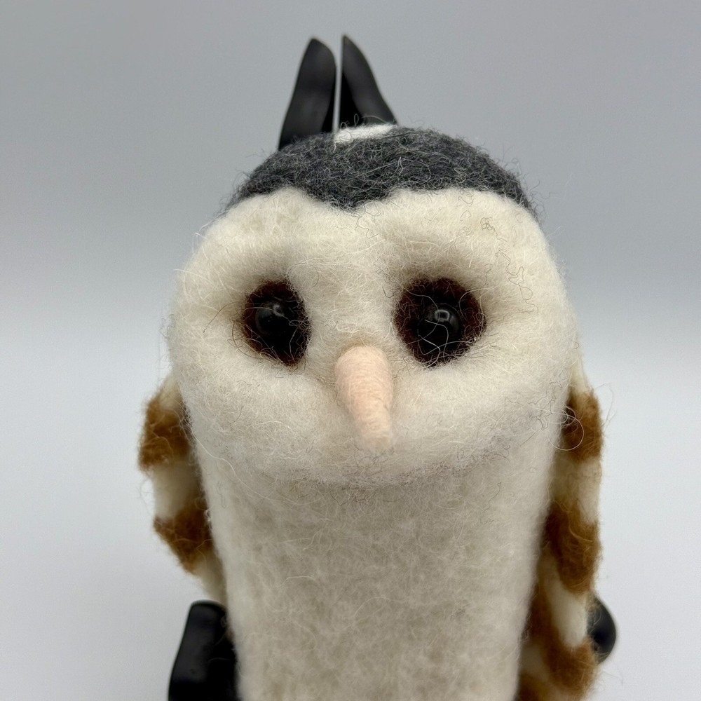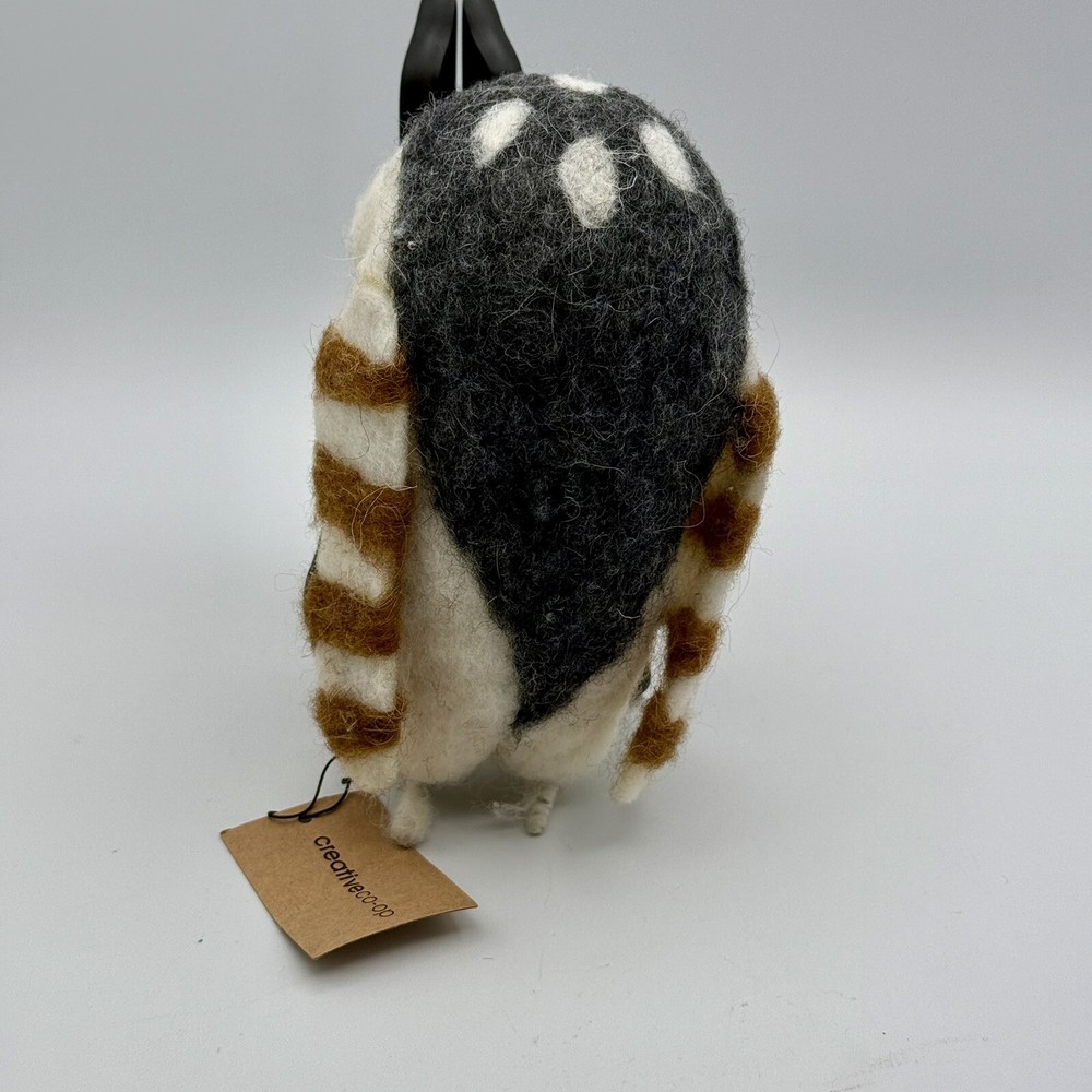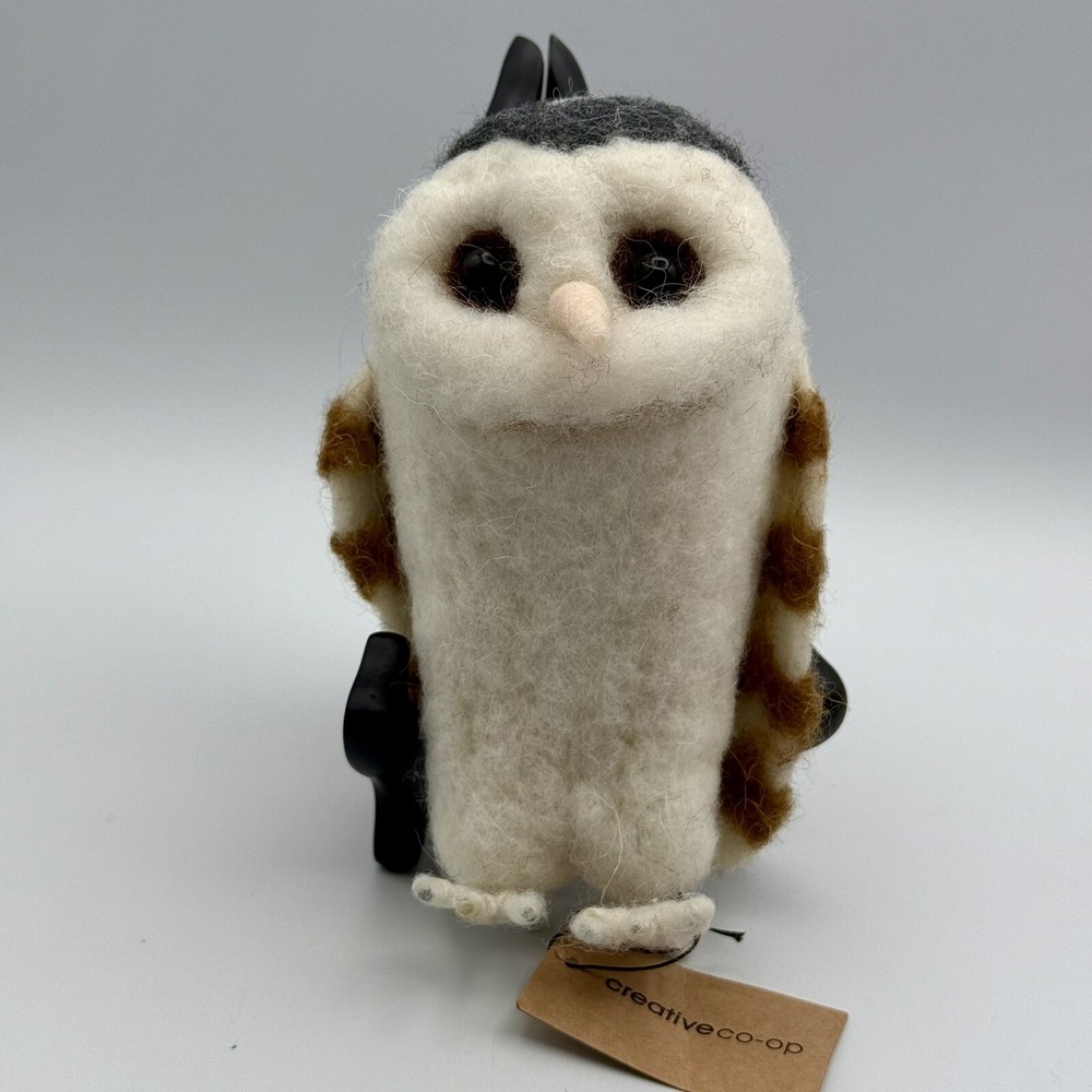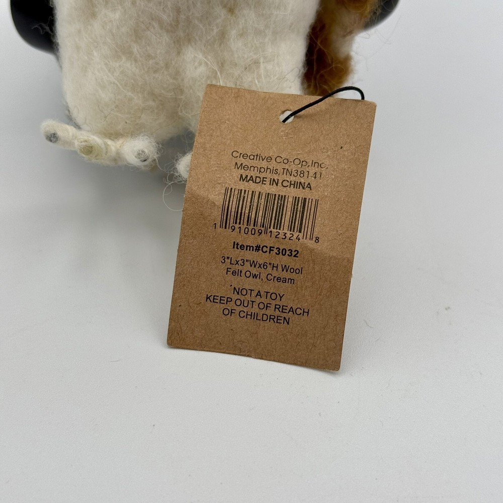 This unique wool felt sculpture features an owl design, crafted by Creative Co-op. Measuring 3 inches by 3 inches by 6 inches, this soft and creamy piece is perfect for adding a touch of whimsy to any room. The intricate details and use of high-quality materials make this a standout addition to any collection of handcrafted and finished pieces. Whether displayed on a shelf, table, or mantel, this sculpture is sure to delight all who see it.