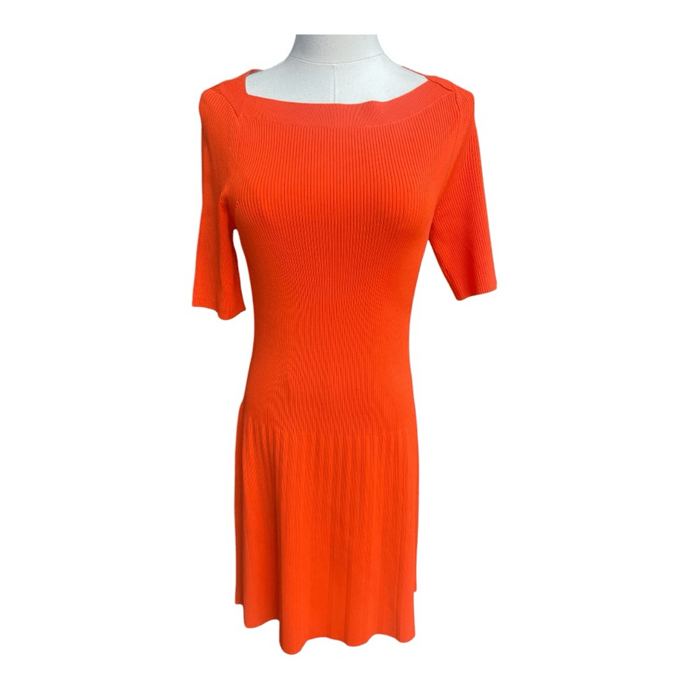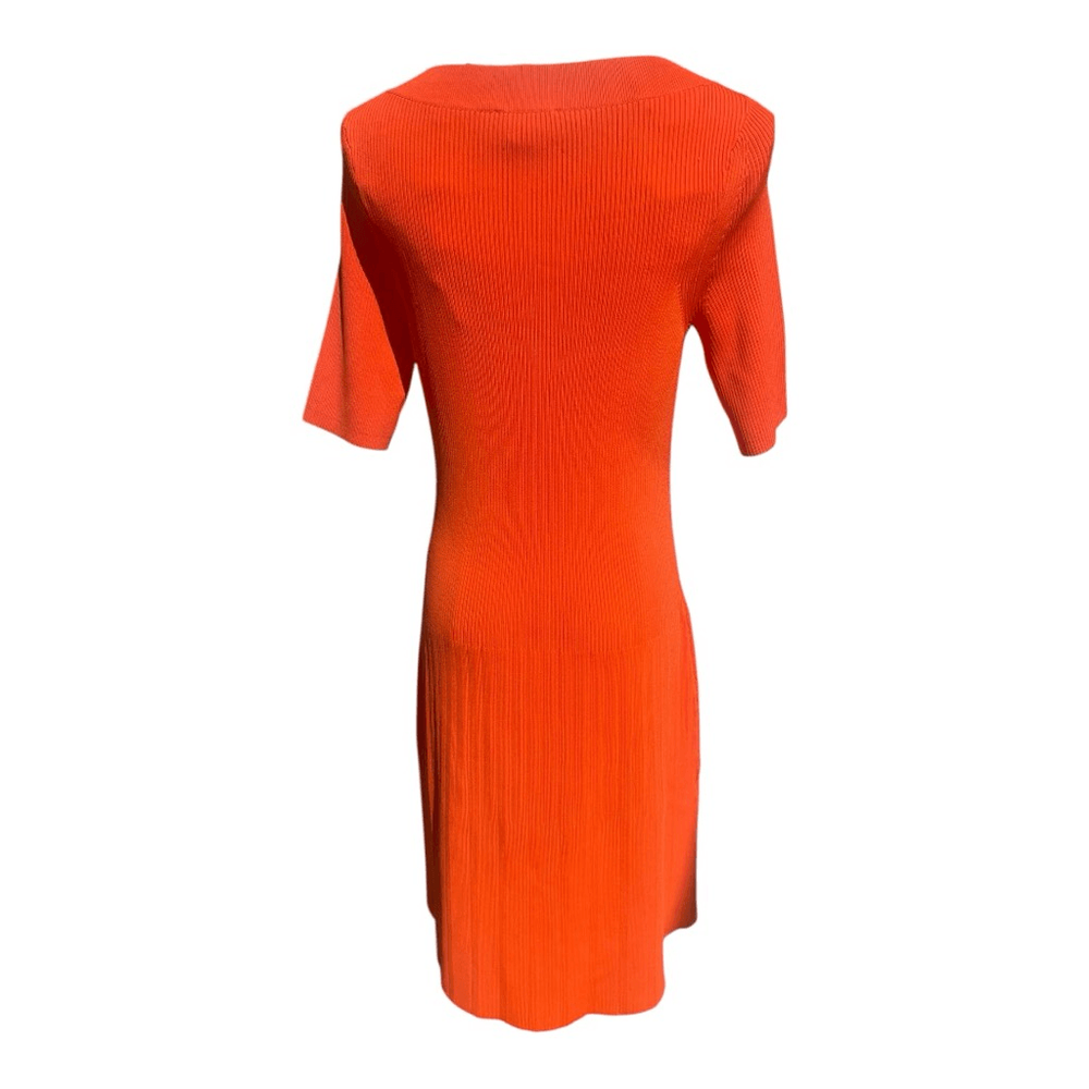 Worth NYC Orange Knit Fit and Flare Dress. Size Small. Measures 15” P2P and is 38” long from shoulder to hem. This dress is an excellent preowned condition with metal wear. No stains or flaws. ...