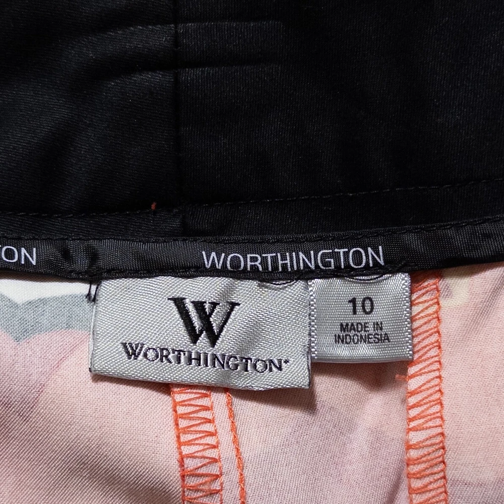 Worthington Pants Womens 10 Red Orange Floral Bold Print Ankle Straight Mid Rise Good condition, no flaws found. Please see photos for approximate measurements. First photo is waistband measurement. Second photo is rise measurement. Third photo is inseam measurement. Measurements are taken with item laying flat and unstretched. We ship every business day via USPS mail with tracking number provided. Please message with any questions and thank you for supporting our small business! Be sure to click "save this seller" to follow us for more great items added daily. All pre-owned clothing cleaned per eBay's standards.
