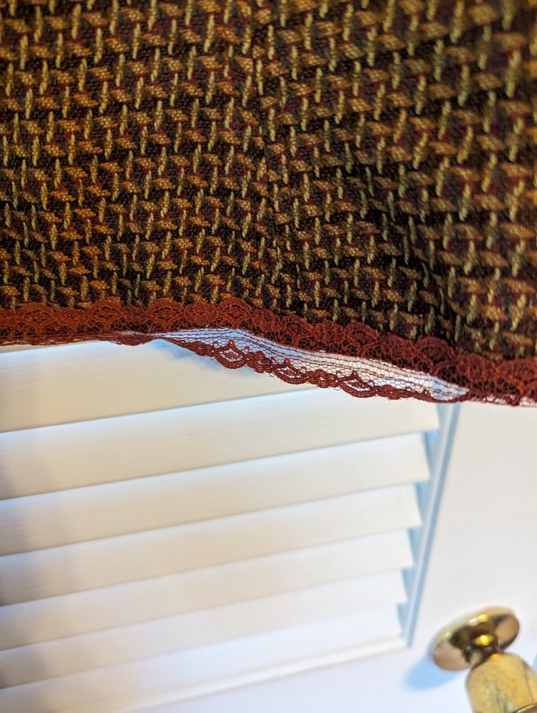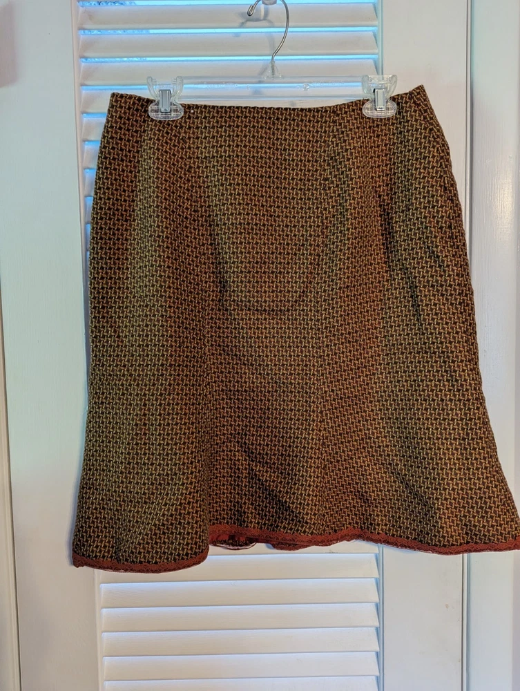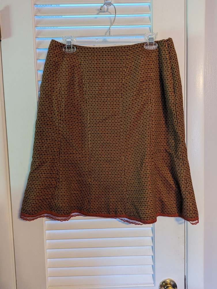This skirt is absolutely gorgeous! The brown-orange color is rich and stylish, and the delicate lace trim adds a lovely feminine touch. The fit is perfect for a size 10, and the waist measurement is accurate. Though it arrived slightly wrinkled and with a new-clothes scent, a quick steam freshened it right up. Super comfortable and great quality—definitely a wardrobe favorite! Seller was prompt and helpful—highly recommend!