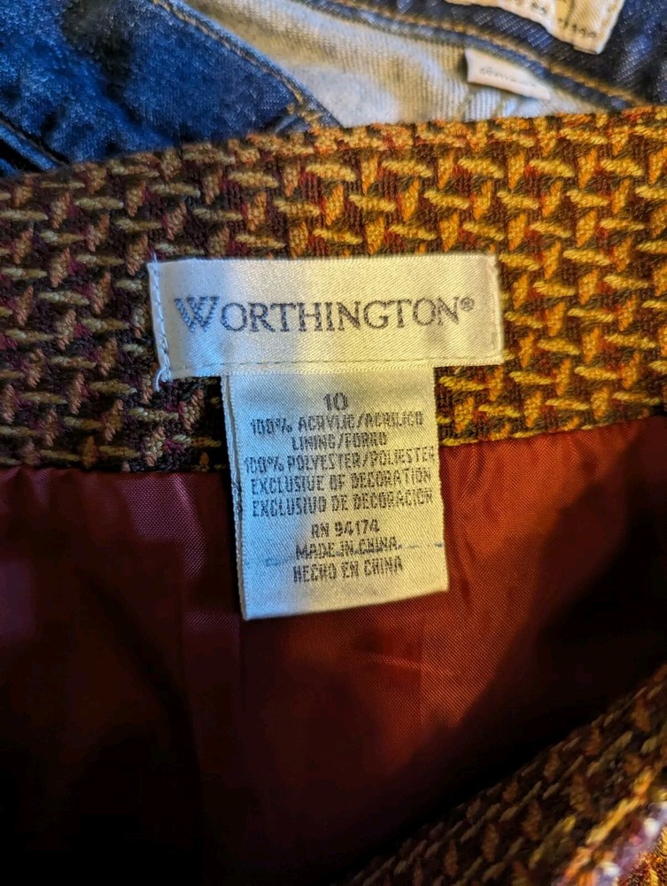 Very nice Worthington size 10 shirt. Lace trim on the bottom. Size zip. Waist measures 15.5 inches across the front. Some items are wrinkled due to storage. Some items also have a new clothes odor. Please ask all questions and check all measurements prior to bidding. I do not accept returns. Will combine shipping on multiple items.