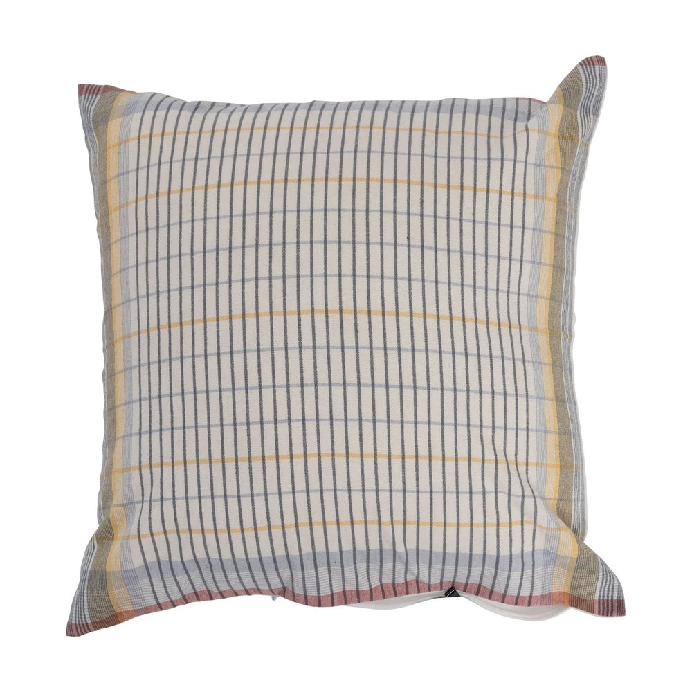 Add depth and personal style to any bed, chaise, or loveseat with a thoughtfully crafted throw pillow; Each plush accent features a variety of prints, embroideries, and textures, carefully curated to enhance any interior design scheme This sophisticated throw pillow features a classic plaid printed on durable woven cotton Multicolor square cotton throw pillow with plaid print; White cotton encasement on back Express your constantly evolving style with the simple addition of this eye-catching pillow Removable cotton throw pillow cover and insert; in seam zipper closure; 30 degree wash, do not bleach, tumble dry low; Do not dry clean, medium iron if needed Pillow measures 18" L x 18" W x 2" H