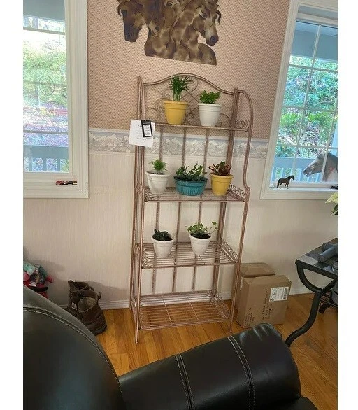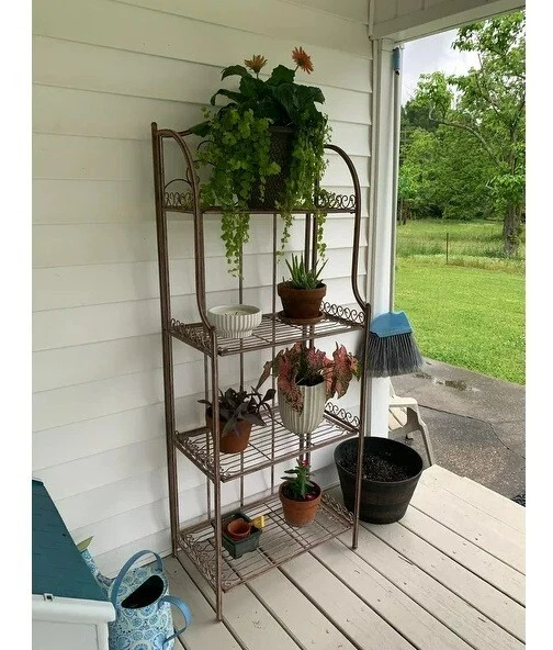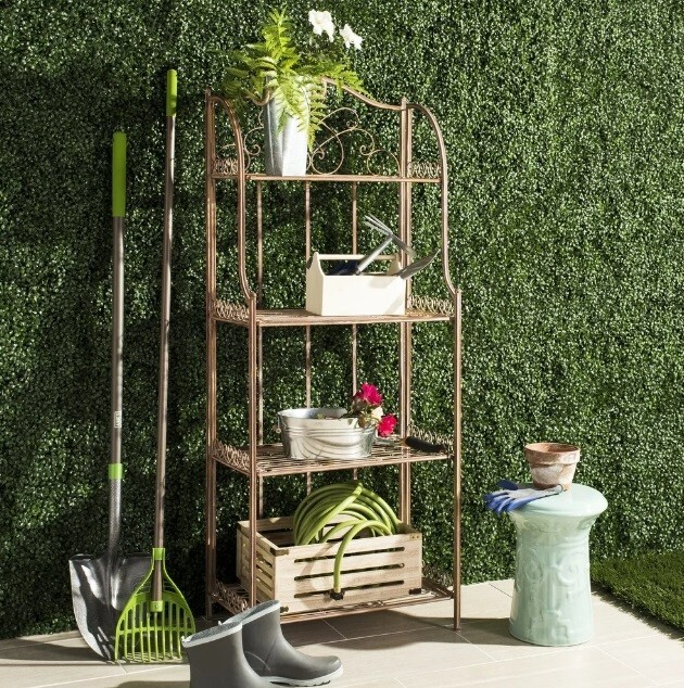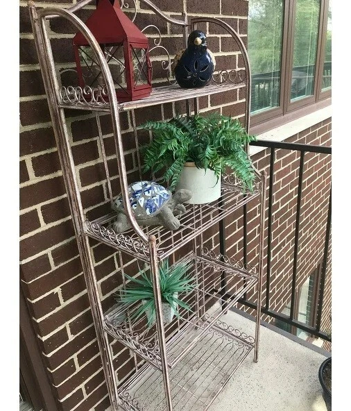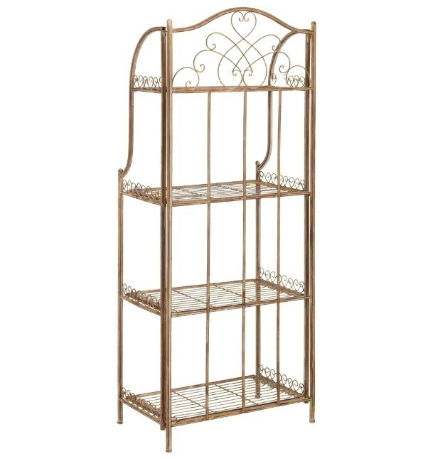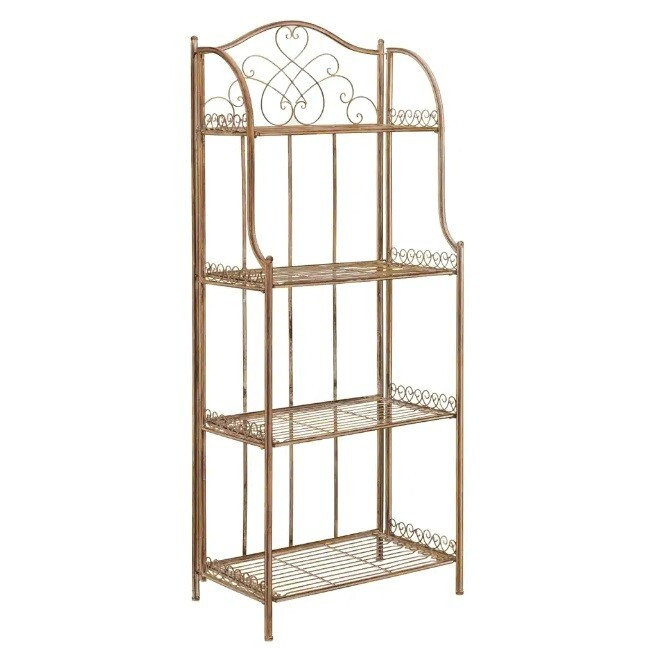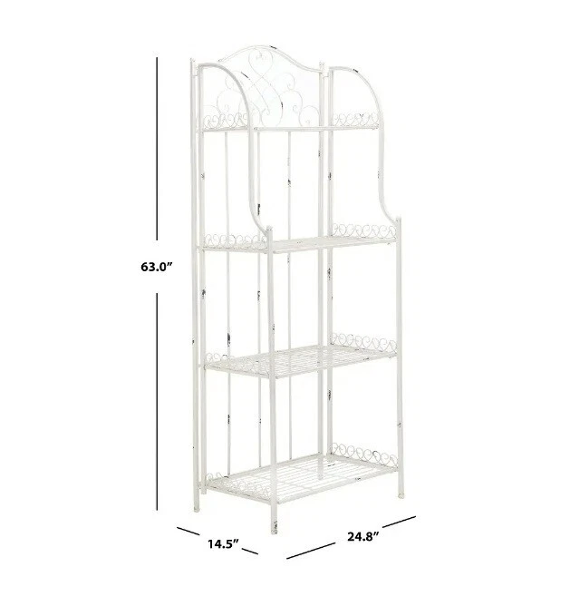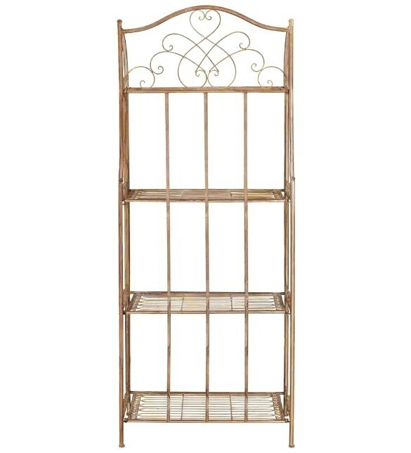 Details: Flourishing with delicate details, this Amaris Outdoor Bakers Rack provides both style and substance to any outdoor entertaining area. The wrought iron scrollwork gives Amaris vintage Victorian charm while four tiers of shelves allow for ample storage or display space. Four (4) shelves Made of iron Ornate design Assembly required Dimensions: 24.8" wide x 14.5" deep x 63" high Country of Origin: China Ships to the lower 48 states only. No local pickup. Returns accepted for 30 days.