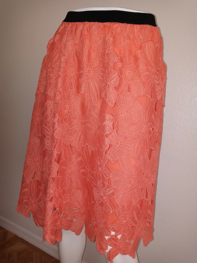 Xhilaration Orange Skirt Floral Size L For Ladies .(C11).