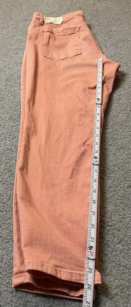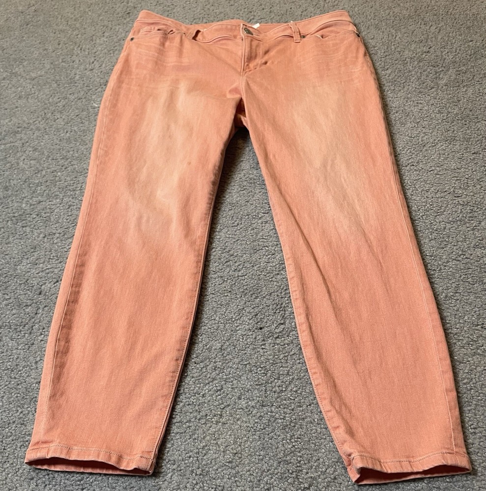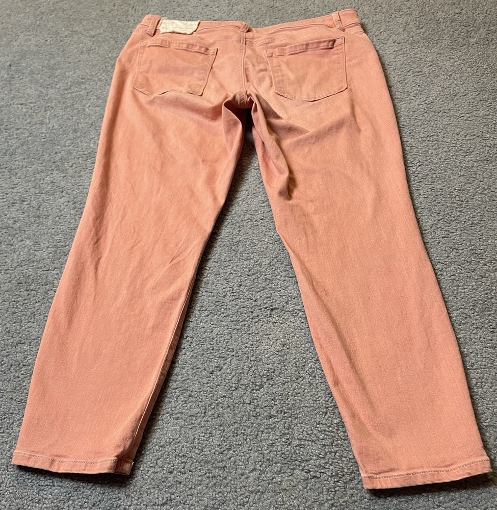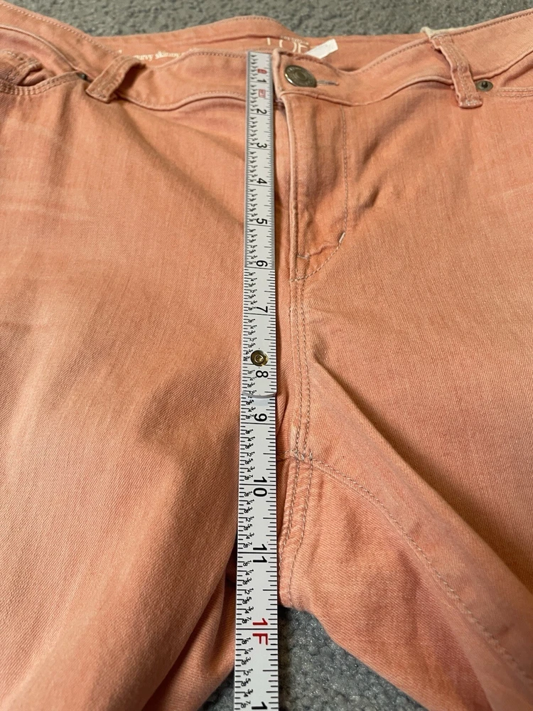 *** please check pictures for measurements & more details Ann Taylor Loft Women’s Curvy Skinny Ankle Jeans Sz 32/14 - blended fabric, peach to light orange , stretch - mid rise, pockets Wear/discolora...