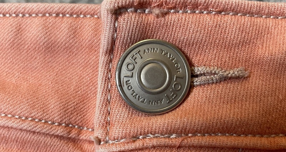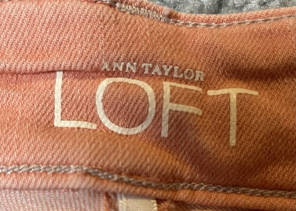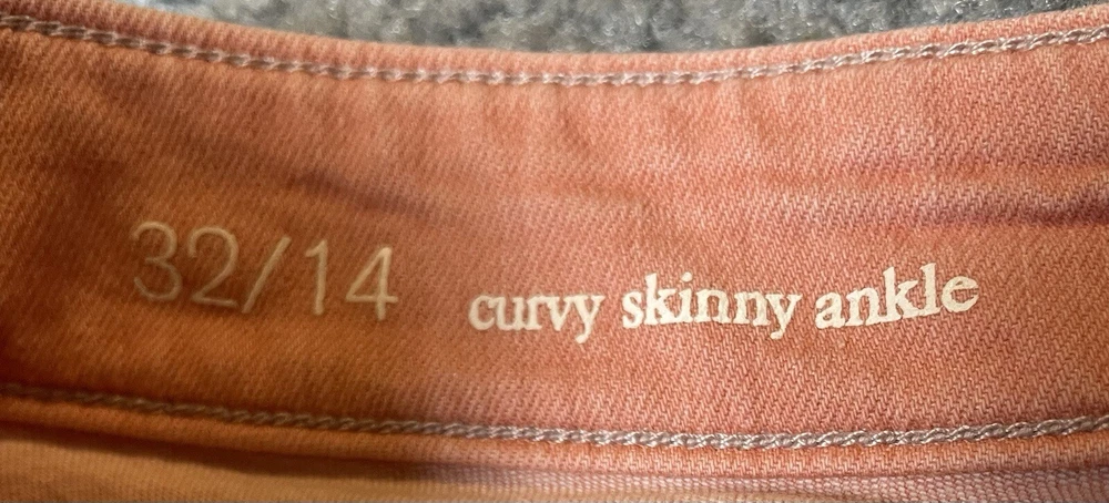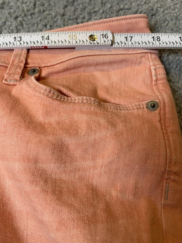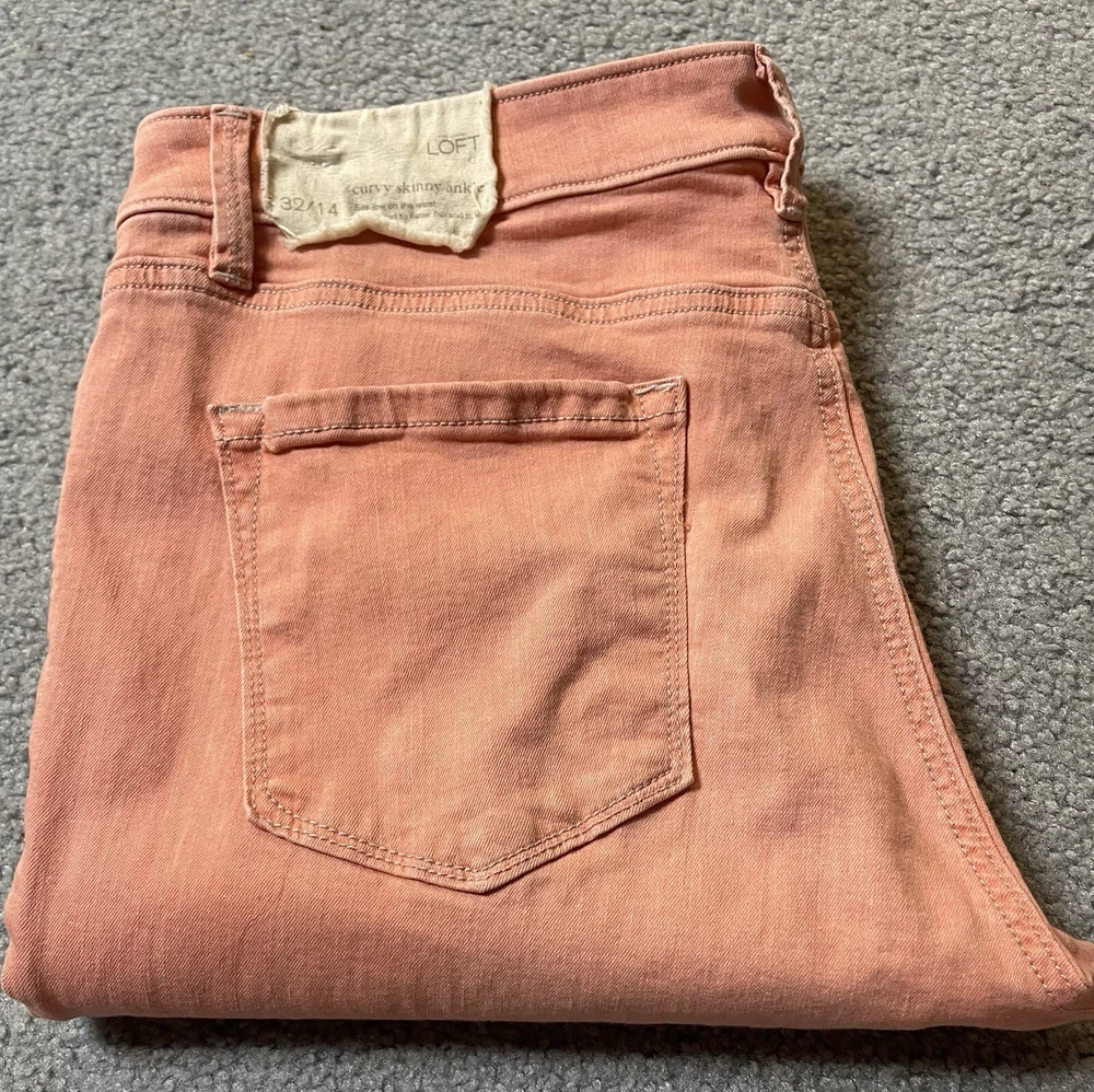 *** please check pictures for measurements & more details Ann Taylor Loft Women’s Curvy Skinny Ankle Jeans Sz 32/14 - blended fabric, peach to light orange , stretch - mid rise, pockets Wear/discoloration from normal use