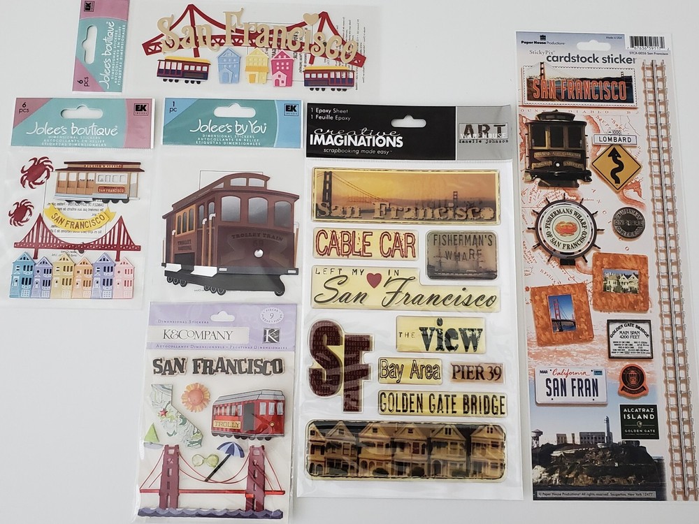 *You Choose* sticker from a drop-down menu. Items are new and sealed, from a smoke and pet free home. Creative Imaginations San Francisco is one Epoxy sheet. Paper House San Francisco is 1 Sticky Pix Cardstock non-dimensional sticker sheet. Shipped via USPS Ground Advantage with tracking. We offer combined shipping savings based on weight when purchasing multiple packages.