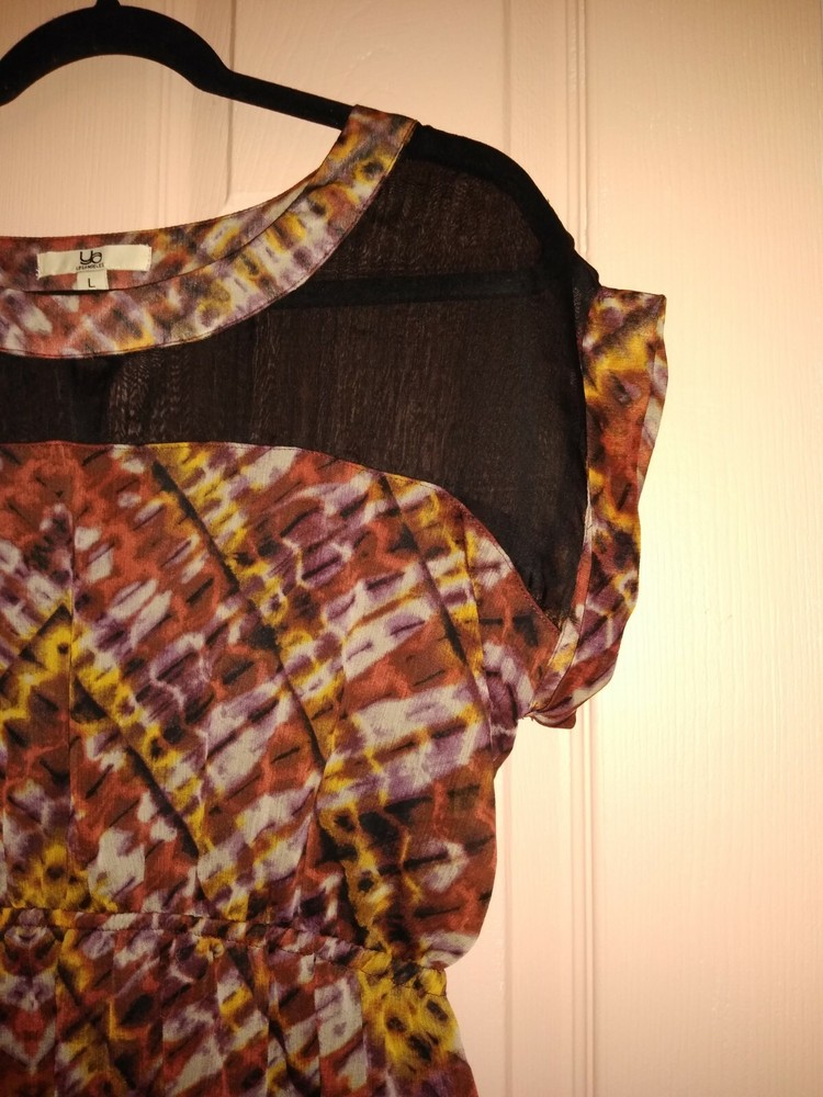 Ya Brown / Orange Large Polyester Short Sleeve Dress measurements bust = 40 inches waist = 36 inches length = 35 inches