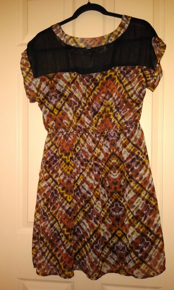 Ya Brown / Orange Large Polyester Short Sleeve Dress measurements bust = 40 inches waist = 36 inches length = 35 inches...