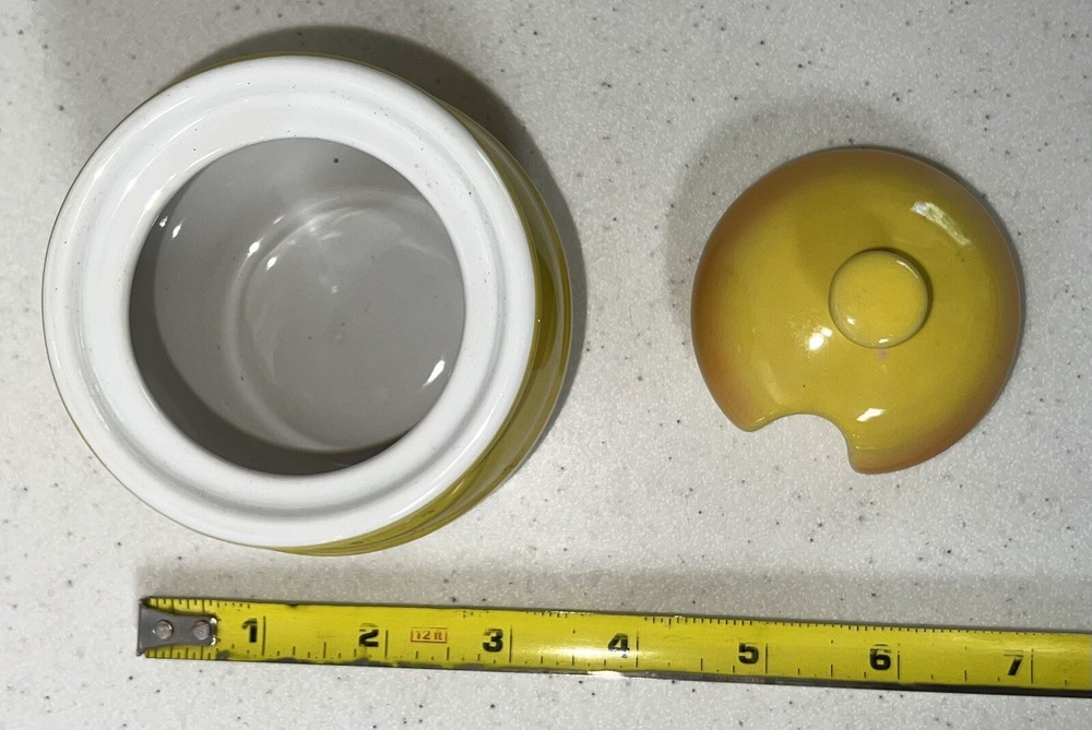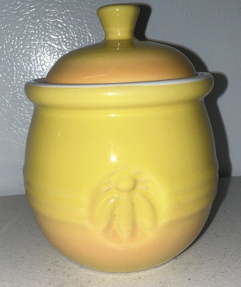 Yellow Ceramic Honey Jar CREATIVE CO-OP. *****NO DIPPER SEE ALL PICTURES FOR DETAILS ON CONDITION In great vintage or used condition no chips or cracks Used or vintage items may have slight crazing, scratches, tarnish or imperfections See pictures for details and request additional pictures prior to purchasing if desired I do combine shipping- please request invoice prior to payment so I can revise shipping cost