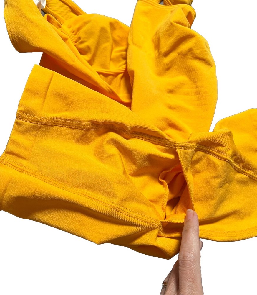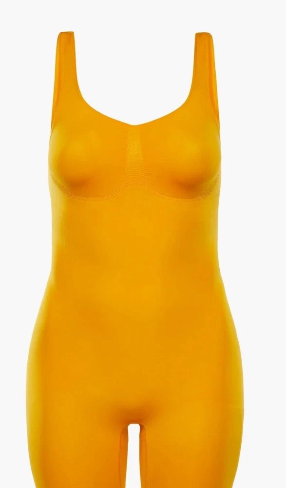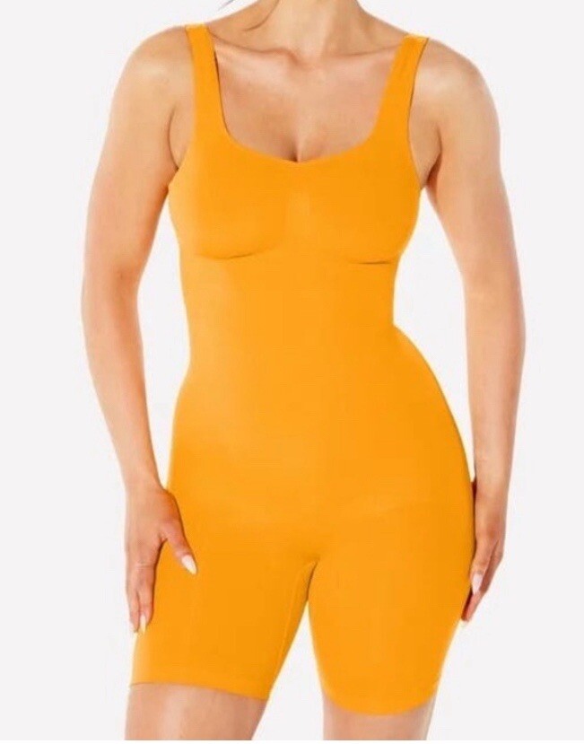 Yitty By Fabletics Nearly Naked Shaping Mid Thigh Bodysuit M/L Orange NEW Color is Mimosa (Light Orange) New unworn/not washed/ Product Description Award-winning shapewear that enhances every body. Booty-lifting technology makes your curves pop and medium compression sculpts all over while cinching your waist. Seamless, 4-way stretch fabric prevents any chafing and keeps you comfy for all your plans. Features Antimicrobial SilverSeam Technology keeps you fresh and odor free Moisture wicking so you stay dry Medium compression shapes and firms No-show under clothing Anti-uniboob stitching provides definition Bathroom-friendly open gusset Sustainably designed using recycled materials Targeted compression shapes and sculpts your thighs Fabric 57% Recycled Nylon/27% Nylon/16%Spandex