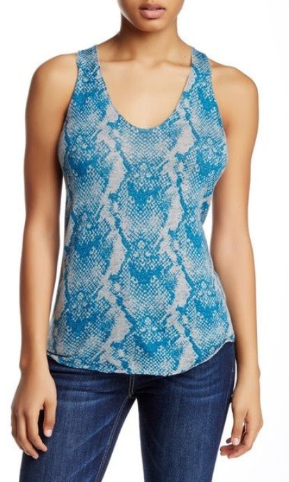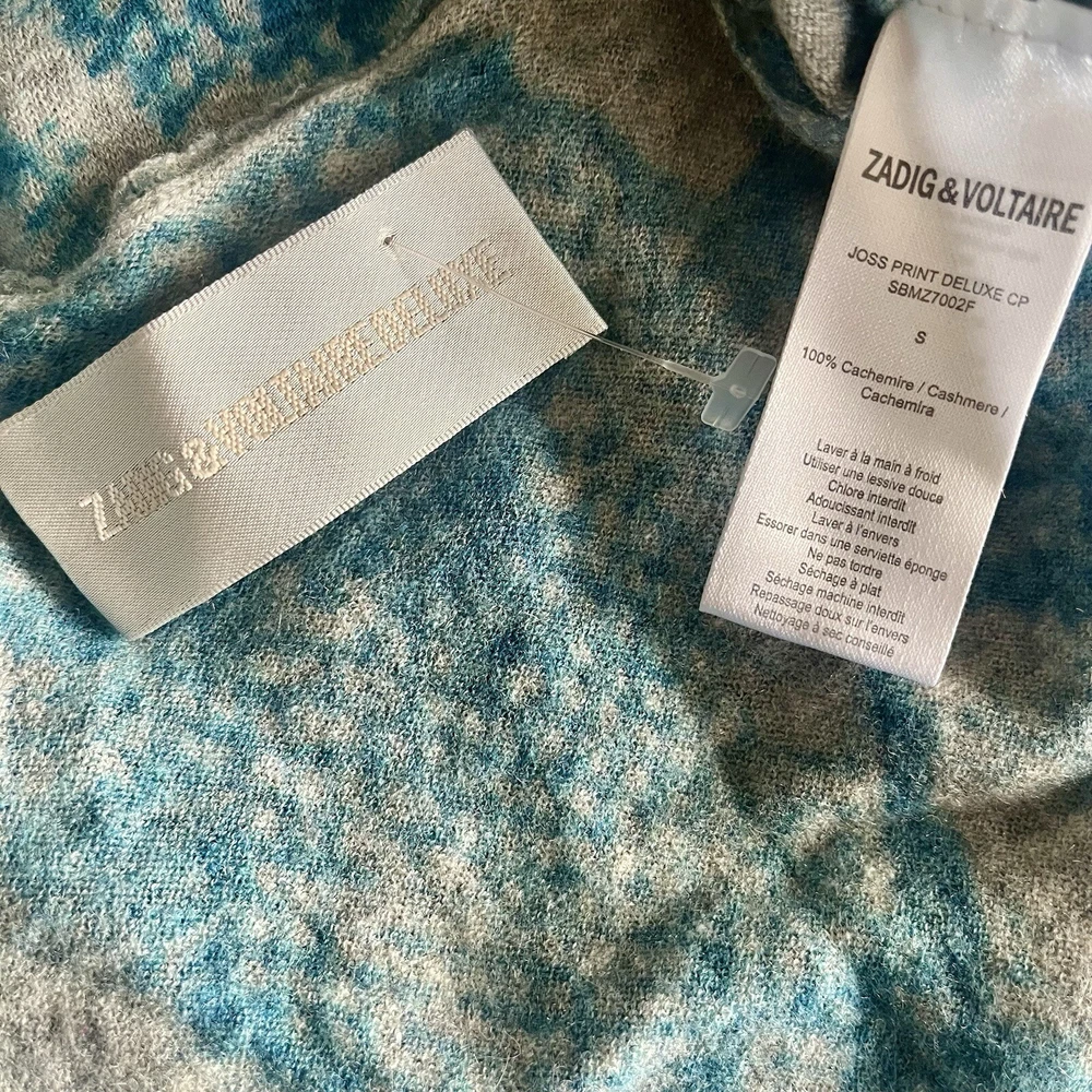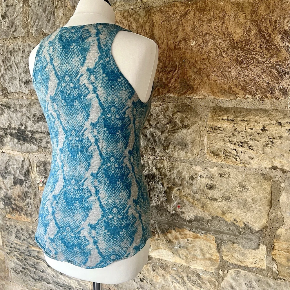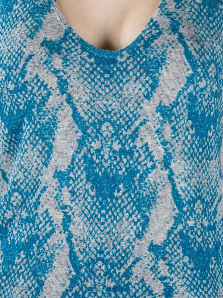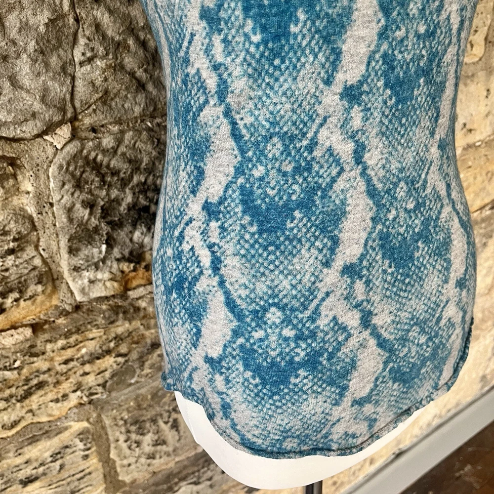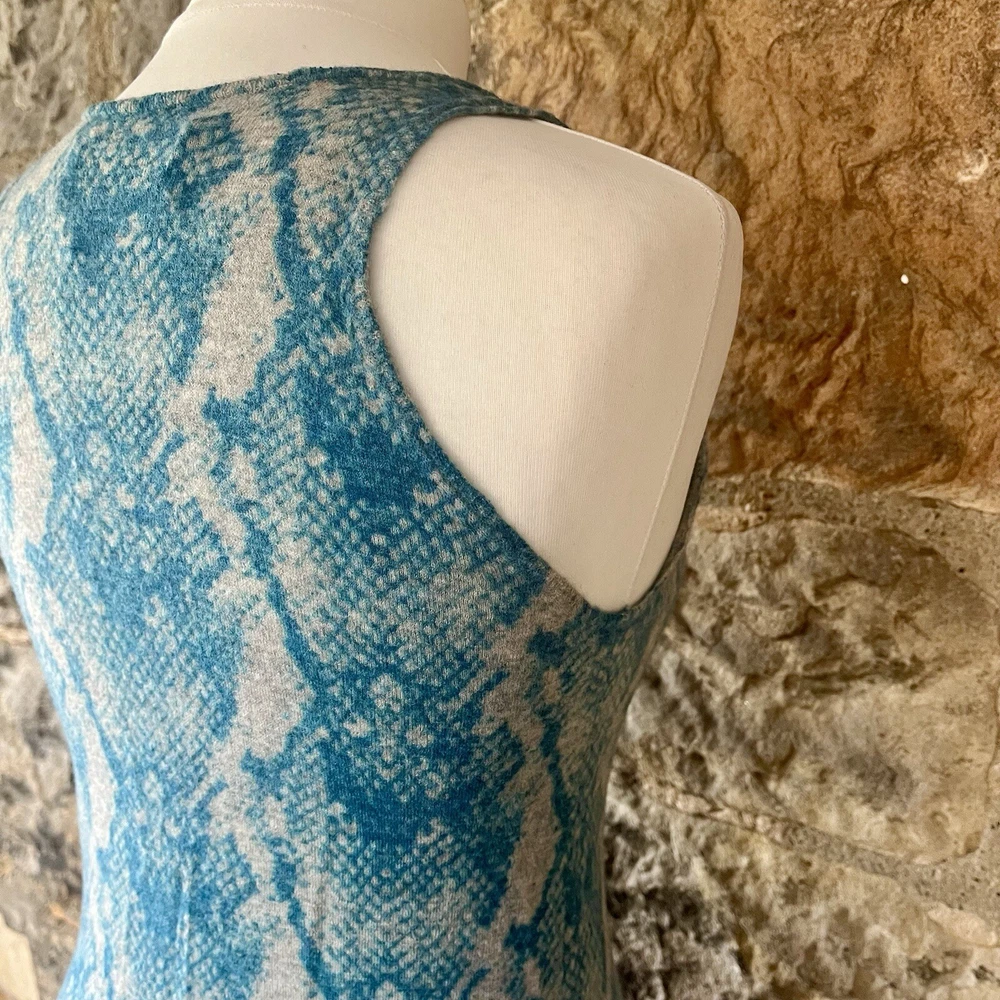 Zadig & Voltaire Deluxe Joss Cashmere Tank Top RRP $350 Size S - would fit a UK 8 - 10 - for reference the mannequin is a size 10 Azure Blue & Grey 100% Cashmere Sleeveless Vest top is crafted from snake-print cashmere with fine ribbing at the edges. V-neck In good condition