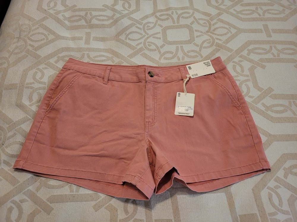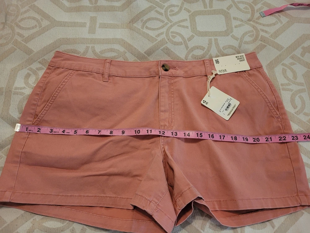 a.n.a A NEW APPROACH Women’s Size 16 Mid-Rise Twill Shorts 3.5 Inseam Corall....