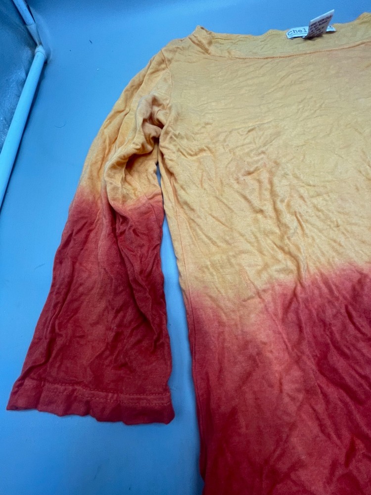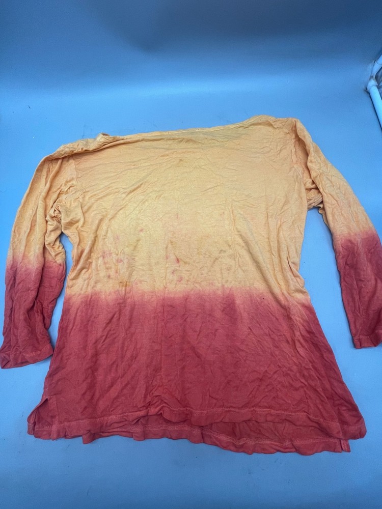 This vibrant tie-dye tee features a blend of orange and red hues, perfect for casual outings. Made in India from soft viscose, it offers comfort and style with its medium fit. Pre-loved and ready for a new home, check the photos for more details. • Mid sleeve design • Tie-dye pattern in orange and red • Soft viscose material • Made in India • Medium size fit • Armpit to armpit: 19" • Length: 24" • Pre-owned condition • Casual and stylish • Ideal for everyday wear Features: • tee shirt Size: Womens M Condition: Pre-Owned Fair READ used see photos