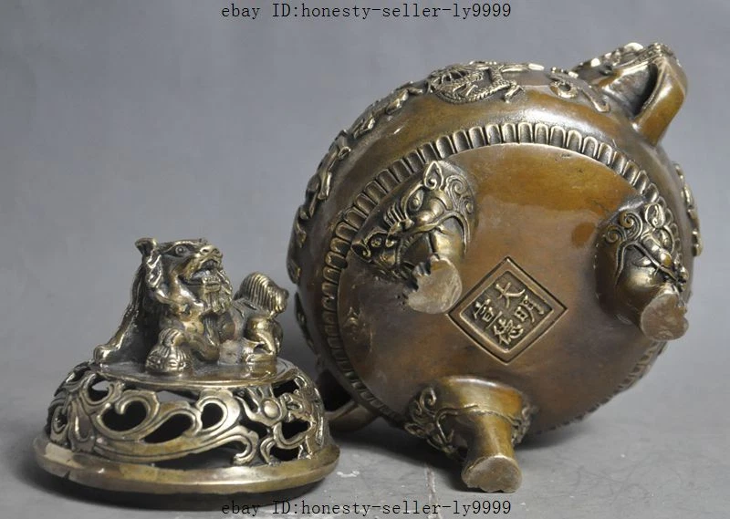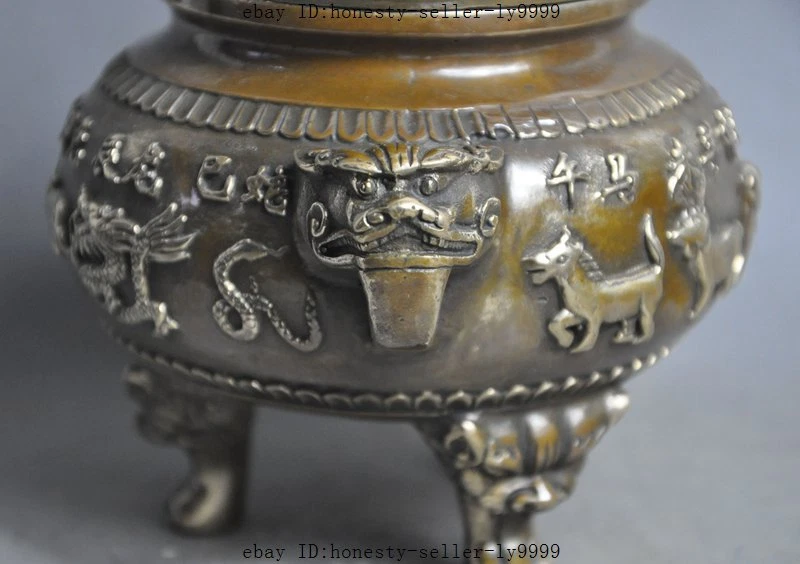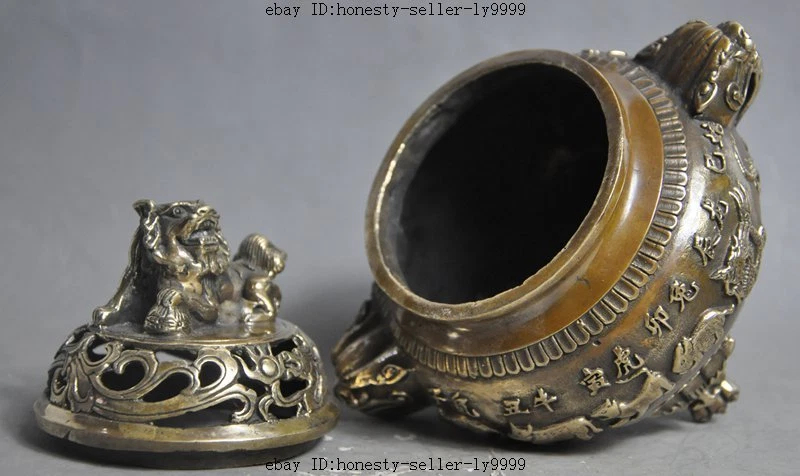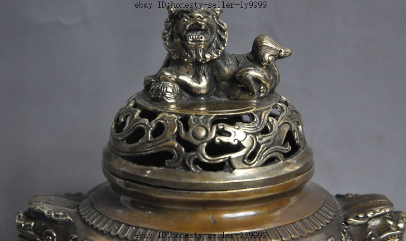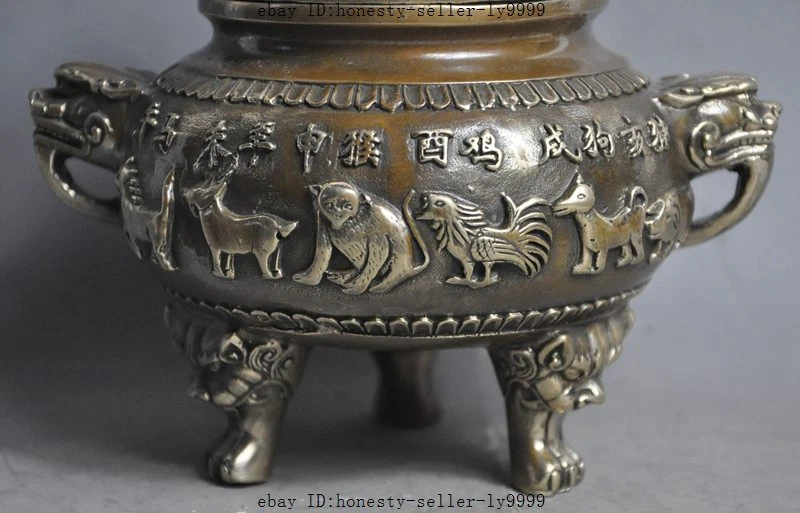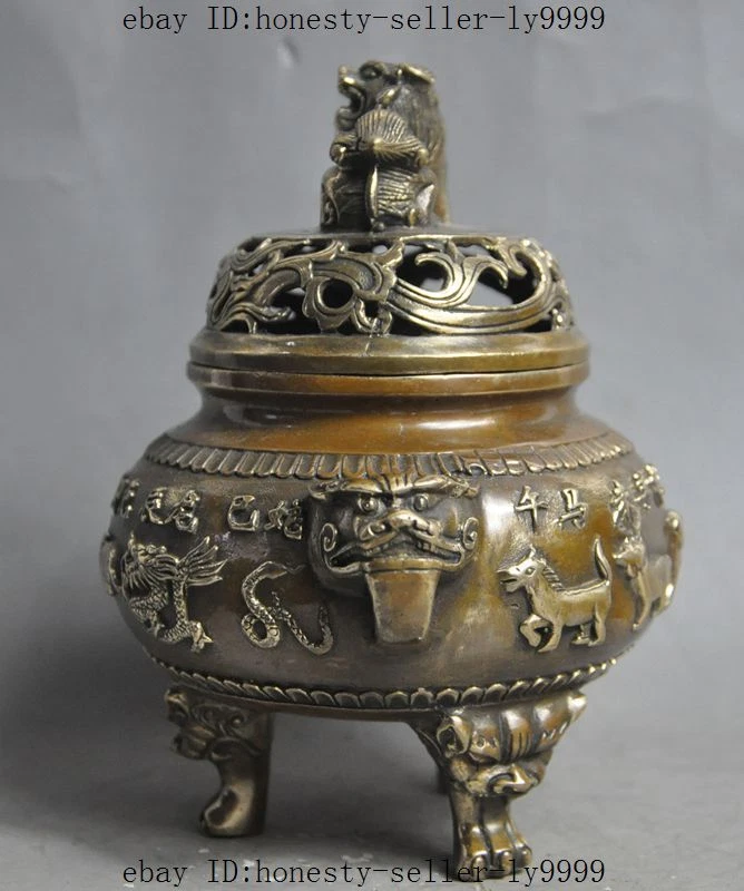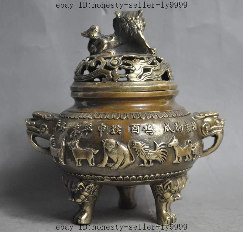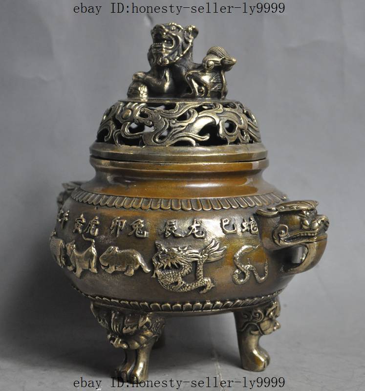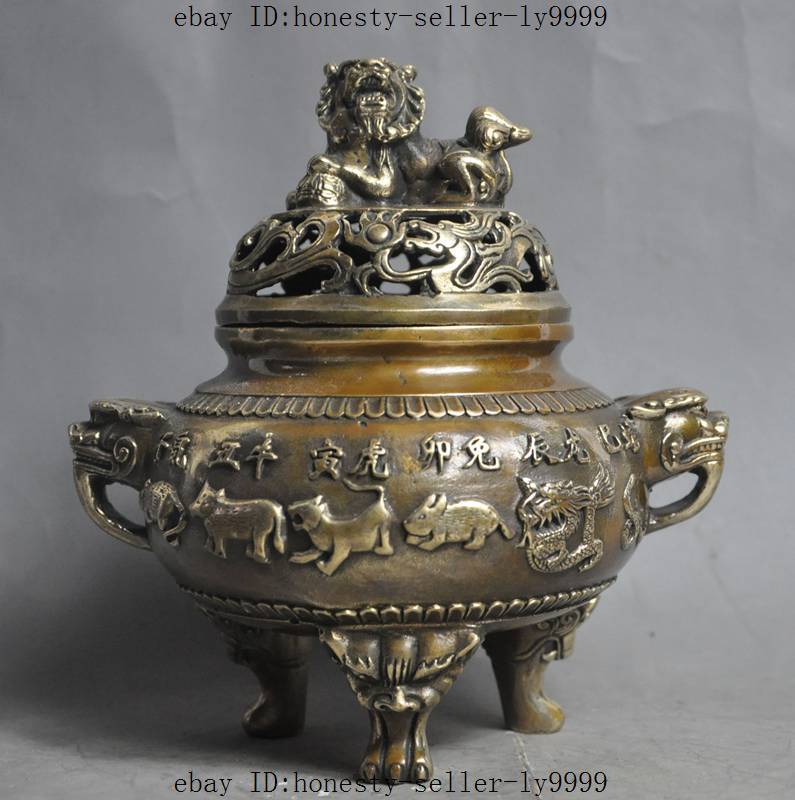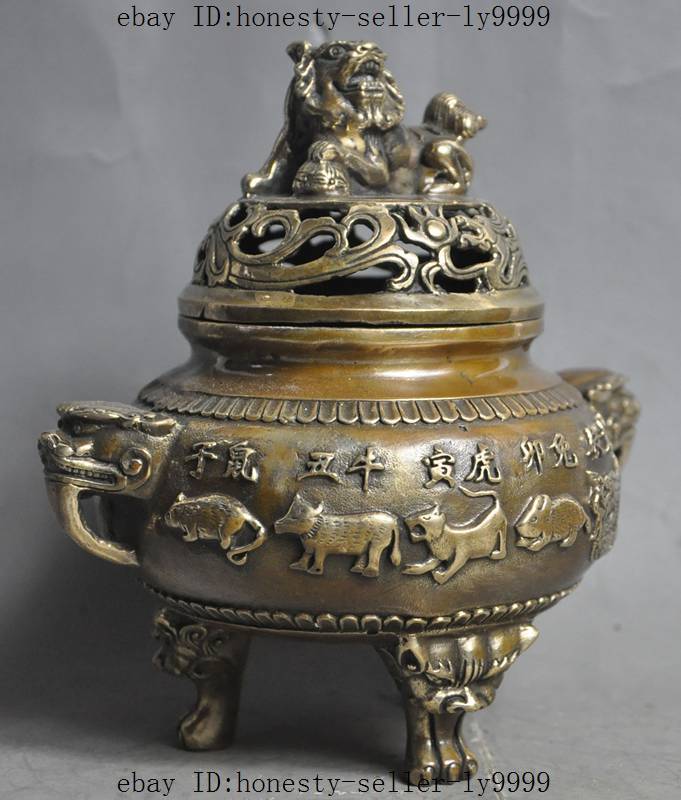 Here is an china buddhism joss bronze Zodiac signs lion beast statue Incense Burner Censer ,As you can see the image, It is in good condition, and was created by skilled craftsmen in traditional style with fine handcrafts . This is a great piece of valuable collection, a valuable personal alter or a very good present. the handwork is very fine with incredible detailing. Don't miss out this chance to get it .Wish you good luck! Size: Height : 6.3 inch Long:5.55 inch Width :4.33 inch Size: Height :16 cm Long: 14 cm Width : 11 cm Weight: 1.0 KG----included the weight of packing materials Materials: bronze Condition: Good condition Origin: China Shipping cost by Air Mail EMS (7-15 days ) : $Free we only accept paypal if you have any problems on payment,please inform us via ebay message . 1.We ship regularly Monday to Saturday (Beijing Time) and will ship your items within 1-2 days upon payment received. If we can not ship your item on time for some special reason, we will inform you via ebay message. 2.We are not responsible for nor can we offer any specific advices on import fees, duty, customs, VAT or taxes that you may have to pay when your order arrives. 3.We ship the items according to your Paypal address except the special notes from buyers! Be sure that your Paypal address is correct when you buy the items in ebay. We do not take responsibility for item loss due to wrong address. 4.Estimated delivery time: Shipping may be influenced by holidays, events and some other uncertainties. If you dislike the seemingly long shipping time, please think carefully to bid or buy the item. We do not want to get a negative or neutral or low DSR score because of shipping time. If you have special demand on shipping time, please inform me via ebay message. We want to give you a happy shopping experience, when you are not satisfied with our products, please contact us on EBAY, we are responsible seller, we will solve your problem, please believe us,thanks! If you're in any way dissatisfied with your purchase, let me know through "MY MESSAGES" or "Ask Seller Questions" or our mailbox. We will solve it for you. We are committed to ensuring that you are completely satisfied with every transaction. 100% Satisfaction guaranteed ! We will reply your mail with in 24 hours normally. Sometimes have a little delay due to the weekends or holidays. If you can't get our mail after 48 hours, please check your spam or contact to us via Ebay. In addition to contact us through eBay or you can send your message to our mailbox. Any question, please feel free to contact us, we will always do our best to serve you. Business Hours: Mon-Sat 9:00-17:30:00 (HongKong Time GMT+8:00) ZJ