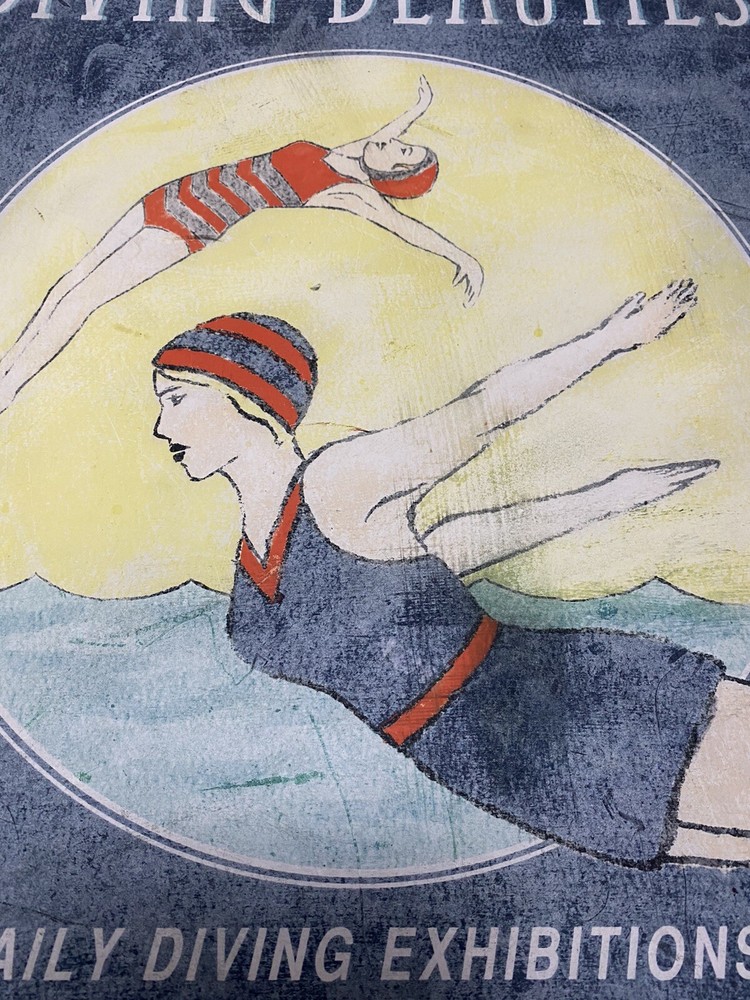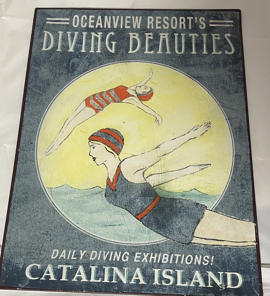 Metal Diving Beauties Wall Decoration Used But In Good Condition Some Fading and Wear Creative Co-Op da5132 Wall Decoration Dimensions: 12" Wide By 16" In Height "OCEANVIEW RESORT'S DIVING BEAUTIES DAILY DIVING EXHIBITIONS! CATALINA ISLAND" Written On The Decoration With Two Women Divers On the Front