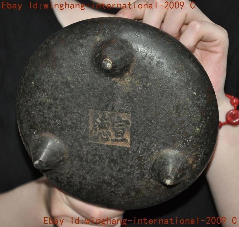 Here is an mark China Chinese Buddhism temple bronze “宣德”joss Incense burner Censer statue , As you can see the image, It is in good condition, and was created by skilled craftsmen in traditional style with fine handcrafts . This is a great piece of valuable collection, a valuable personal alter or a very good present. the handwork is very fine with incredible detailing. Don't miss out this chance to get it .Wish you good luck! Size: Height: 3.6 inch .Long: 6.8 inch . breadth: 6.8 inch Size: Height: 9 CM .Long: 17 CM . breadth: 17 CM Weight: 2.5 KG----included the weight of packing materials Materials: bronze Condition: Good condition Origin: China Shipping cost by Air Mail / EMS (7-15 days ) : $Free D.E.AI DD&LH we only accept pay pal if you have any problems on payment,please inform us via e bay message. 1.We ship regularly Monday to Saturday (Beijing Time) and will ship your items within 1-5 days upon payment received. If we can not ship your item on time for some special reason, we will inform you via e bay message. 2.We are not responsible for nor can we offer any specific adv ices on import fees, duty, customs, VAT or taxes that you may have to pay when your order arrives. 3.We ship the items according to your Pay pal address except the special notes from buyers! Be sure that your Pay pal address is correct when you buy the items in e bay. We do not take responsibility for item loss due to wrong address. 4.Estimated delivery time: Shipping may be influenced by holidays, events and some other uncertainties. If you dislike the seemingly long shipping time, please think carefully to bid or buy the item. We do not want to get a negative or neutral or low D S R score because of shipping time. If you have special demand on shipping time, please inform me via e bay message. We want to give you a happy shopping experience, when you are not satisfied with our products, please contact us on E BAY, we are responsible seller, we will solve your problem, please believe us,thanks! If you're in any way dissatisfied with your purchase, let me know through "MY MESSAGES" or "Ask Seller Questions" or our mailbox. We will solve it for you. We are committed to ensuring that you are completely satisfied with every transaction. 100% Satisfaction guaranteed ! We will reply your mail with in 24 hours normally. Sometimes have a little delay due to the weekends or holidays. If you can't get our mail after 48 hours, please check your spam or contact to us via E bay. In addition to contact us through eBay or you can send your message to our mailbox. Any question, please feel free to contact us, we will always do our best to serve you.
