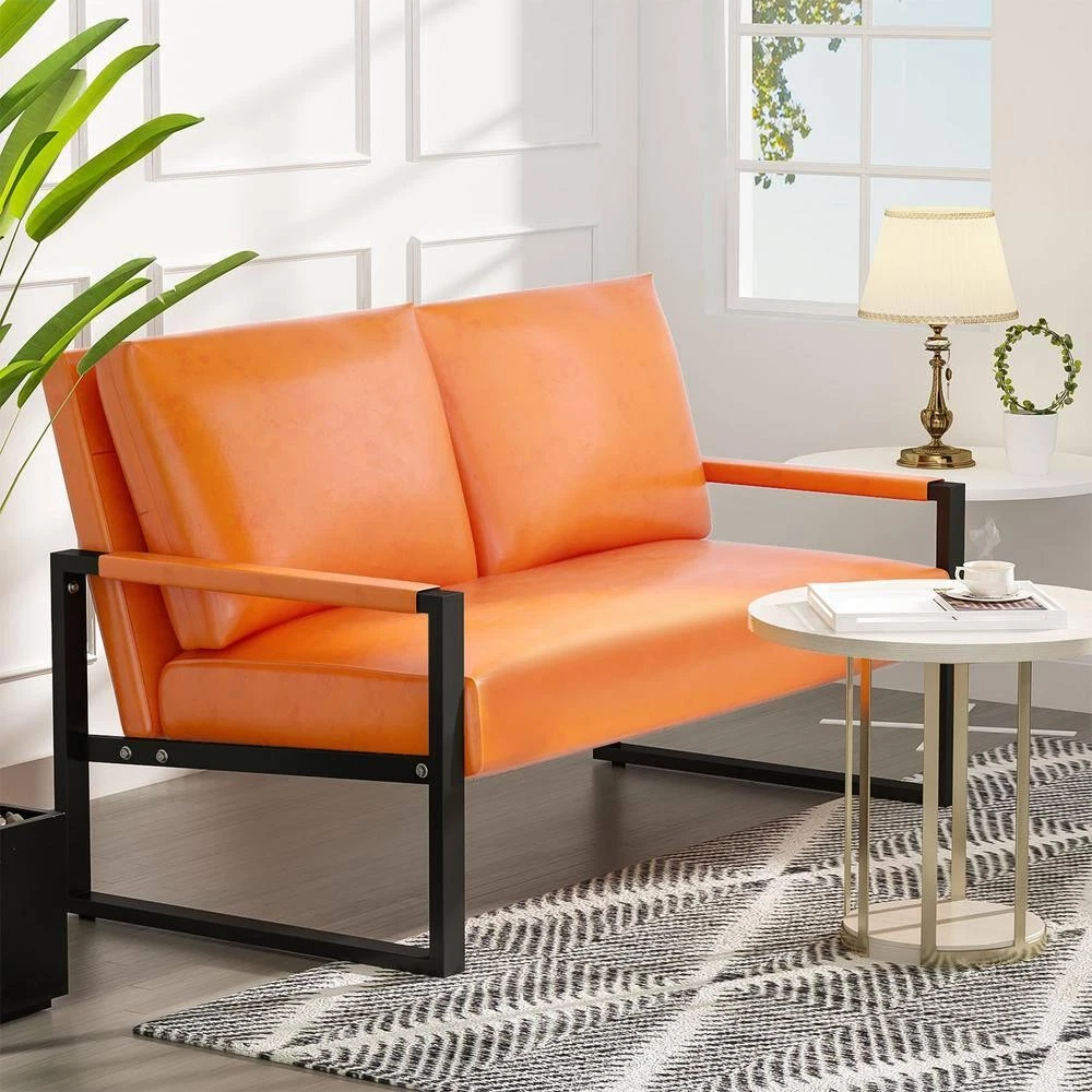 Contact Us Add to Favorite Contact Us Fast Shipping Hassle Free Return eBay Money Back Guarantee Authenticity Guarantee Features Top-grain faux leather offers a luxurious appeal Sturdy metal frame ensures durability and stability Dense foam padding provides optimal comfort Item Description More than just a pretty face, higher than average foam density means a longer-lasting, more comfortable loveseat. It was literally made for binge-watching reality tv show marathons with your closest buds! No doubt, your guests will jealously remark on how you've upped your decor game. But don't get it wrong, this sofa is no fleeting piece of furniture. Made with a sturdy metal frame, it was built to last and enhance your space for years to come with an ageless aesthetic. The perfect collection to update any living room, these incredibly comfortable seats will make you feel immediately at home. Arm Style: Square Arm Assembly Required: Assembly Required Back Style: Tight Back Color Family: Orange Color/Finish: Orange Cushion Material: Foam Features: Armrests Frame Finish Family: Black Frame Material: Metal Interior Furniture Type : Loveseat Orientation: Symmetrical Product Weight (lb.): 43.65 lb Returnable: 30-Day Seats: 2 Seat Shape: Rectangle Upholstery Material: Faux Leather Weight Capacity (lb.): 300 lb Manufacturer Warranty: 30 Days Limited Warranty Product Depth (in.): 28.34 in Product Height (in.): 29.13 in Product Width (in.): 45.66 in Seat Width (in.): 45.6 in About us Customer service is our top priority! Please be sure to read the description thoroughly to make sure that this is the item you want before making a purchasing decision. If you have any questions about this item, please contact us via eBay messages before placing your order. We make every effort possible to accurately describe and depict the items. Please be aware that slight variations in color may be due to differences in lighting and computer monitor resolutions. All items are in stock at the time of listing; however, in the unlikely and unforeseen event that we are unable to fulfill your order through any of our networked warehouses, we will notify you as quickly as possible and offer you a 100% refund on your purchase. Thank you for shopping with us. We appreciate your business! Payment PayPal is our preferred method of payment. If you do not have a PayPal account, all major credit cards are gladly accepted through PayPal as the payment processor. PayPal offers great buyer and seller protection. Your order will be processed pending receipt of cleared payment through PayPal. Sales tax may be charged depending on your location. Shipping We provide fast, free shipping. Most items are shipped within 3-5 business days of receiving cleared payment. We ship to the lower 48 contiguous United States only. We do not ship to P.O. Boxes or APOs. For select items, we ship internationally through eBayâ??s Global Shipping Program. We do ship most of our smaller items internationally using eBays Global Shipping Program. If ordering electrical items outside of the U.S., please note that they will come equipped with a standard U.S. voltage plugs. You will need a suitable adapter to use the item in your country. Certain restrictions apply. Standard or Economy Shipping is ALWAYS FREE! You will be notified via eBay messages as soon as your items ship. Special Notice for Freight Items: If an item ships via Freight (Truck) Delivery, a valid phone number will be required so that we can contact you to schedule delivery. The item may be delivered with curbside delivery. An adult signature will be required. Please be sure to have available help on hand to assist you with moving the item to the desired location in or outside of your home. Freight items must be inspected upon delivery. In the unlikely event that damaged is observed, you MUST refuse delivery and note the damage on the shipping receipt and send it back via the Freight carrier. Returns will not be accepted on Freight items after they have been delivered, inspected, and the driver has left the premises. Returns We offer a 30 day return/exchange policy for most of our products. You can request a refund if you are dissatisfied for any reason with your product. (Restocking Fee May Apply). Only factory defects are accepted as a reason for a return. In the case of factory defects, if available, we will replace the product for you. When returning an item, it must be in all of the original packaging and include all of the original accessories or items that came with it. The item and package should be in original and perfect condition. You will be required to cover shipping on the return of non-defective items. All returns MUST be done within 30 days of date of purchase. Please note that we cannot give refunds or replacements after the 30 day limit has expired. When sending in a return, please note that it can take up to 7 business days for the return to be processed. We do our best to process as quickly as possible. We are extremely fair, and in the rare event of something out of the ordinary happening with our products or shipping, we will gladly work with you to find a fair resolution. Disclaimer Were sorry, but we do not honor product exchange requests. If you need to exchange an item received, you will need to go through the normal returns process identified in our returns section and then order the correct item, if it is still available. Orders are processed immediately and dispatched to fulfillment as soon as they are received. For this reason, we are typically unable to honor cancellation requests. If you need to cancel the transaction, please contact us as soon as possible and we will attempt to cancel the order. If the order has gone too far through the fulfillment process, we will be unable to cancel. In that event, you would need to wait until you receive the item and go through the normal returns process as mentioned in the returns section of our policies. Payment Options Shop With Conf