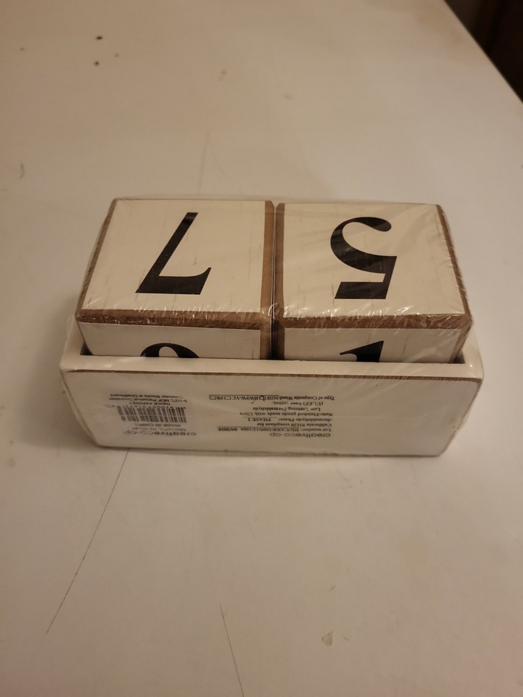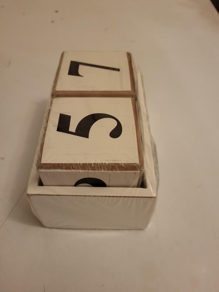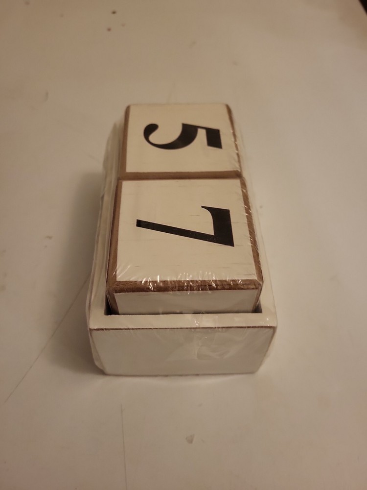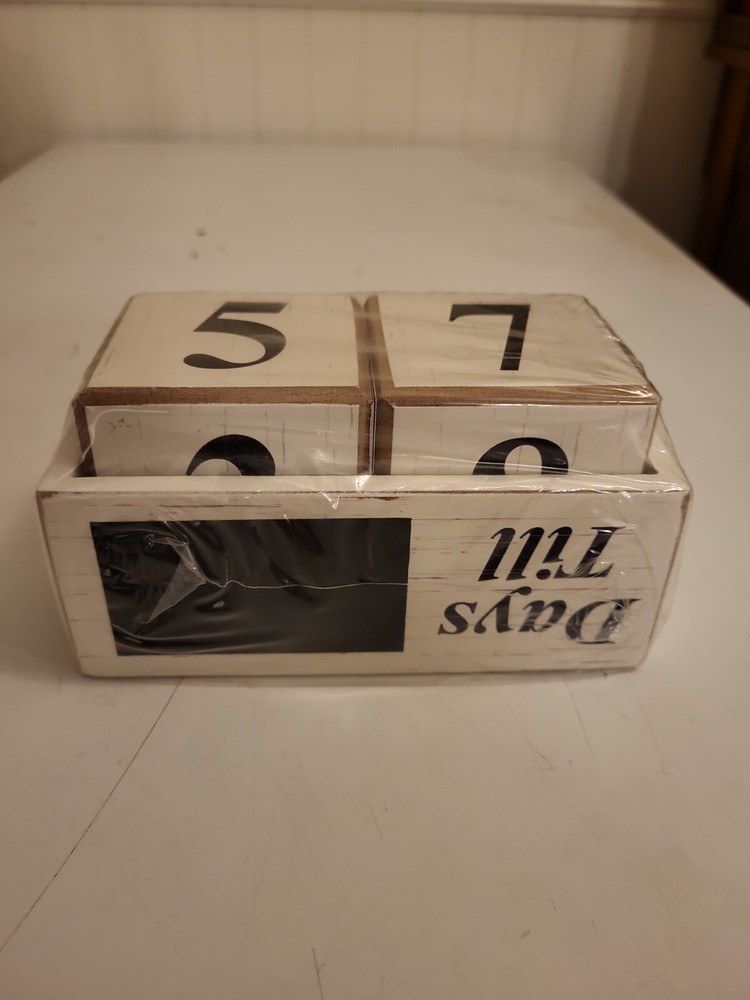 *new* Creative CO-OP Christmas Perpetual Calender (wooden numbers in tray). See pics, exact item youll receive. Creative coop wooden block numbers, in.a small wooden tray with small chalkboard on front to write on if want. Brand new, in wrap. We do combine shipping, no returns, as is. Ships securely within 2-3 buisness days. Thanks for looking, any issues please contact us.