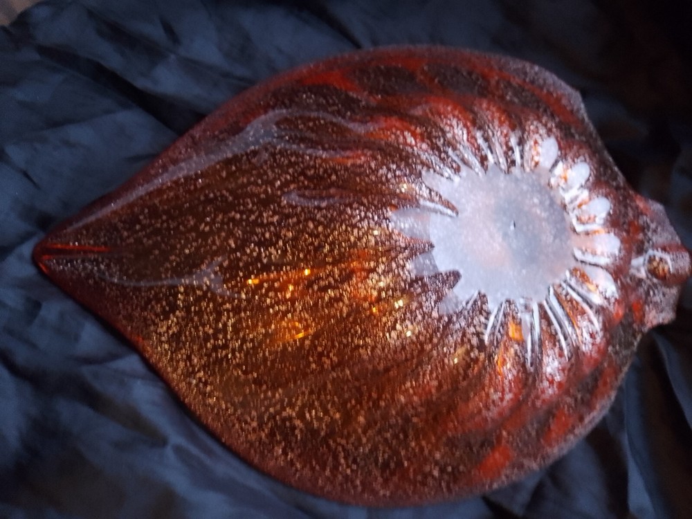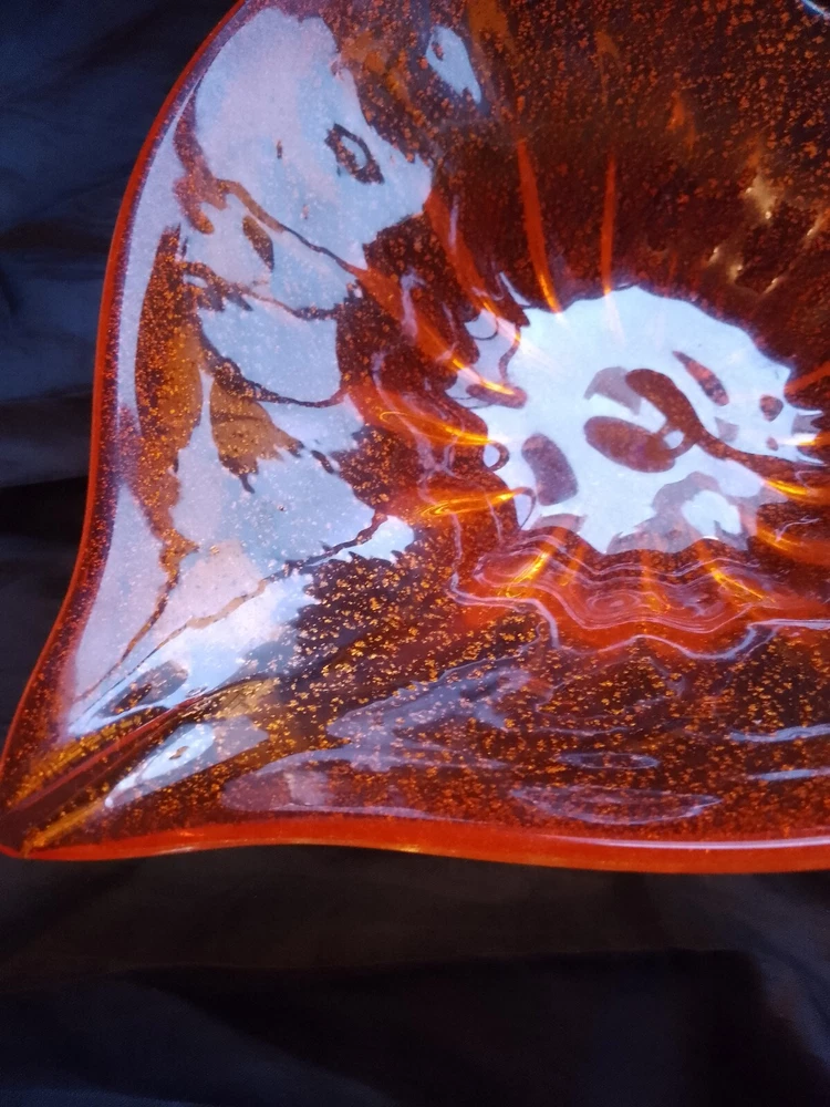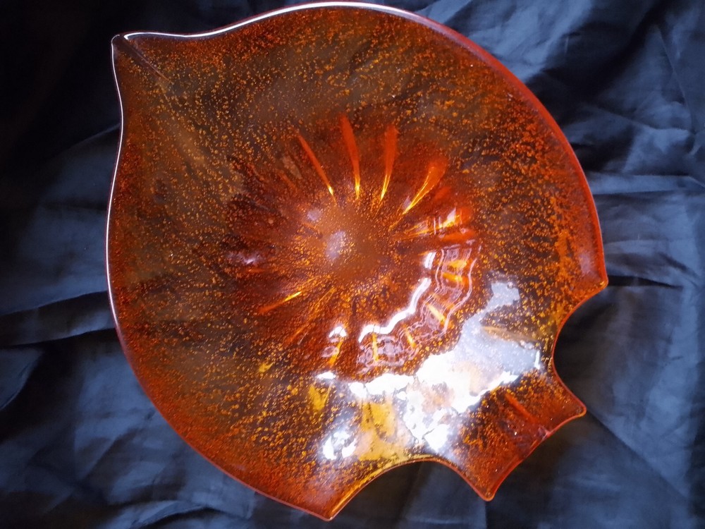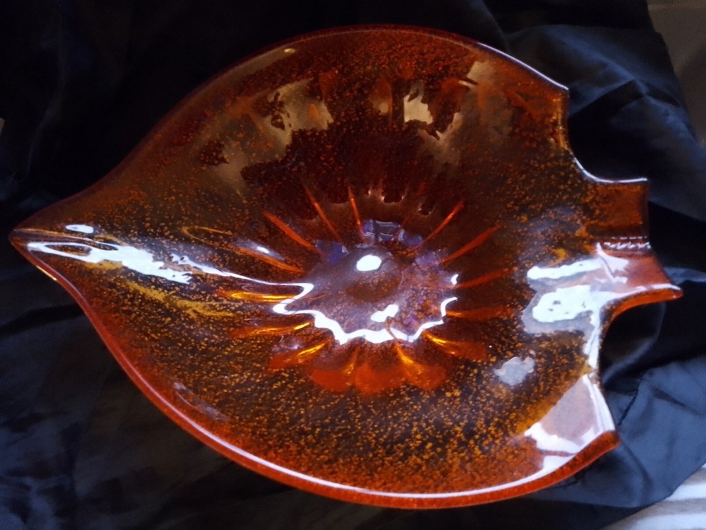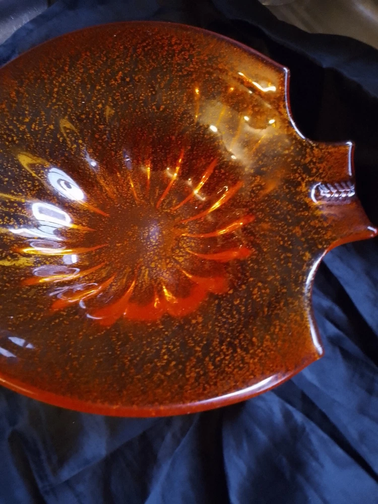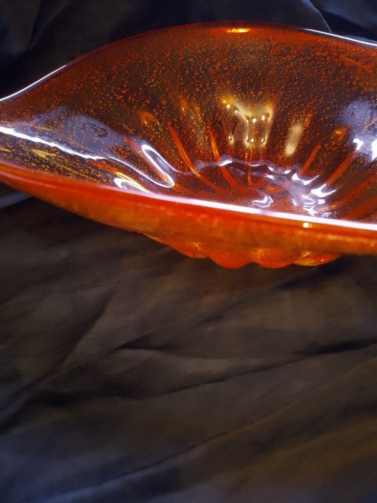 orange glass DISH/Bowl mid century no damage 26.5cms wide