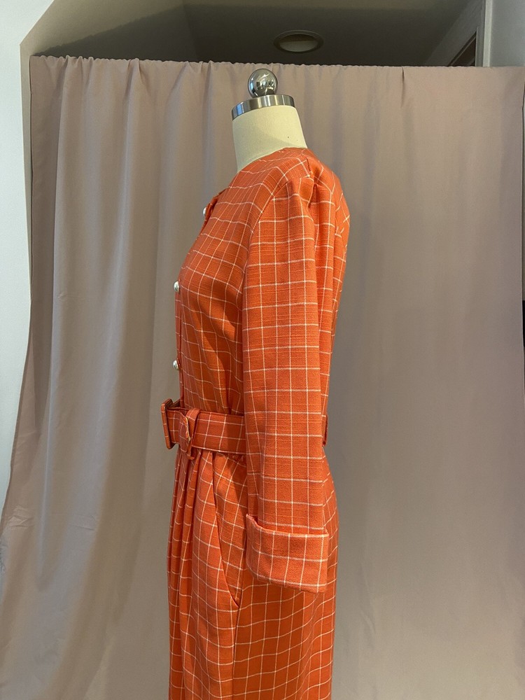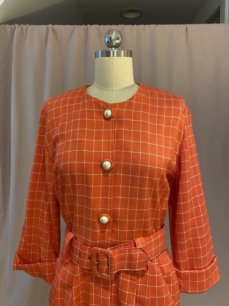 She's peachy, she wears pearls, what more do you want? Shoulder pads are detached. Belt and buttons the whole way down. Petite. I would call this a Size 0-2. 86% Rayon, 7% Polyester, 7% Flax. Shoulder pads are here and I can attach them for you if you really want them. Petite. Mannequin measurements: Bust 30 inches / Waist 25 inches / Hip 35 inches ♡ See photos for damage and stains, we try our best to make you aware of any. Please contact us with any questions or concerns. No returns. Thank you for shopping with sillyrabbitvintage!