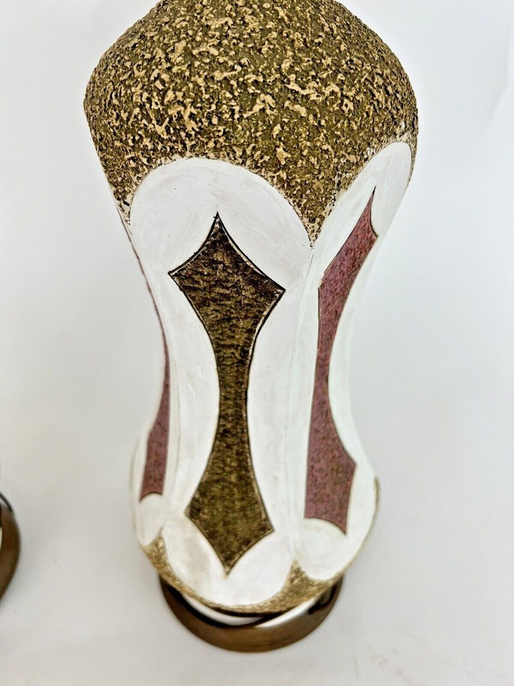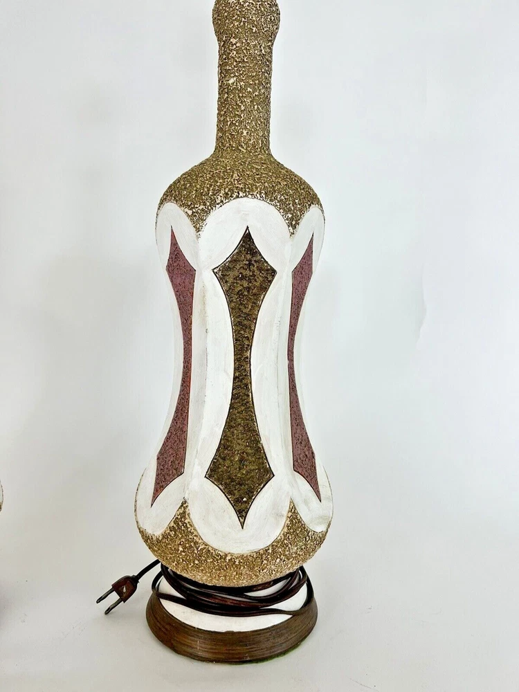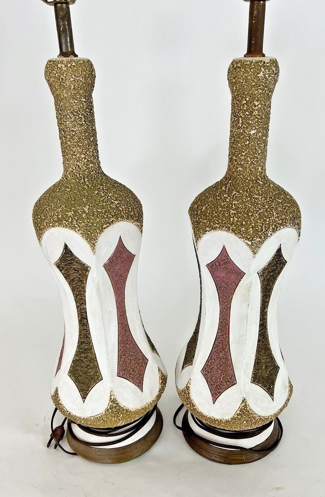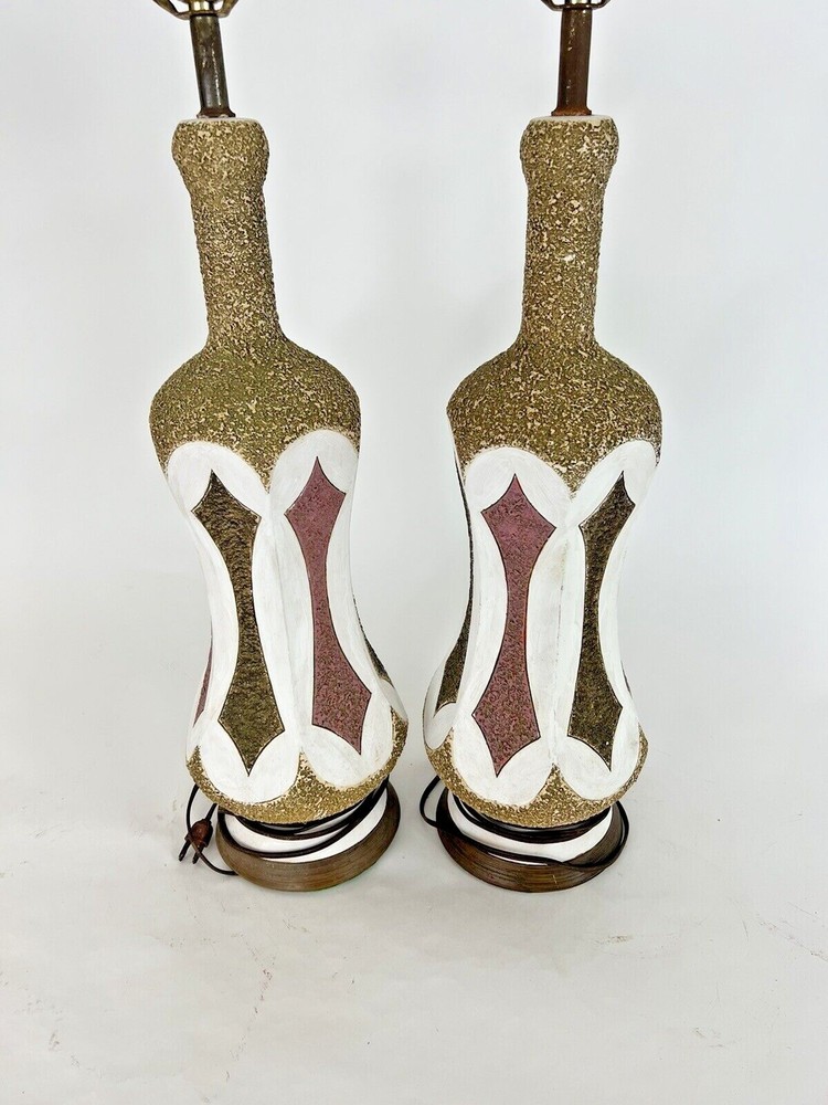 pair of vintage mid century chalk style lamps 25.5 tall 7" in diameter has use from age very good condition no chips or cracks very collectible please see photos nice addition to any room...