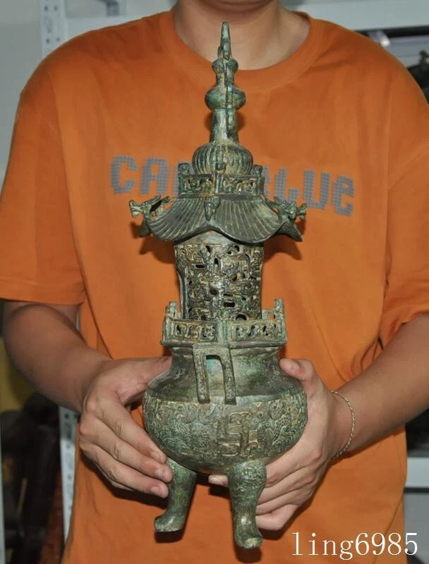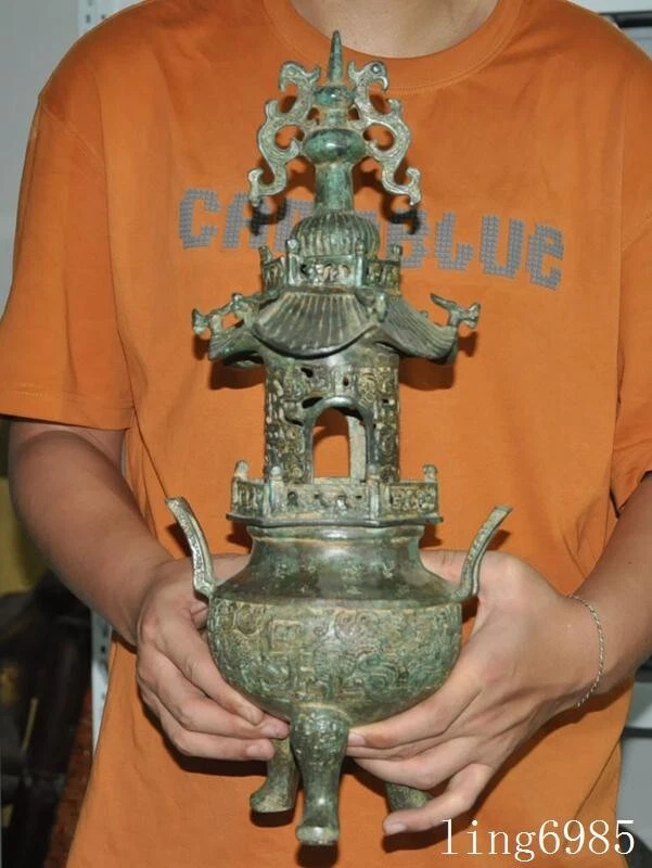 Here is an shangzhou dynasty Bronze Ware Fengshui sacrifice Joss Incense burner Censer , As you can see the image, It is in good condition, and was created by skilled craftsmen in traditional style with fine handcrafts . This is a great piece of valuable collection, a valuable personal alter or a very good present. the handwork is very fine with incredible detailing. Don't miss out this chance to get it .Wish you good luck! Size: Height :17.2 i nch .Long:7.6 inch . width:5.2 inch Size: Height :43 CM .Long:19 CM . width:13 CM Weight: 4.5 KG----included the weight of packing materials Materials: Bronze Ware Condition: Good condition Origin: China Shipping cost by Air Mail (7-15 days ) : $Free D.F.BI