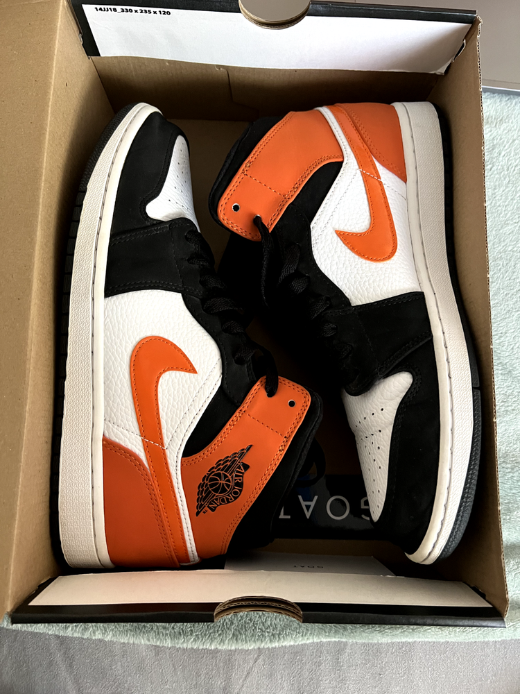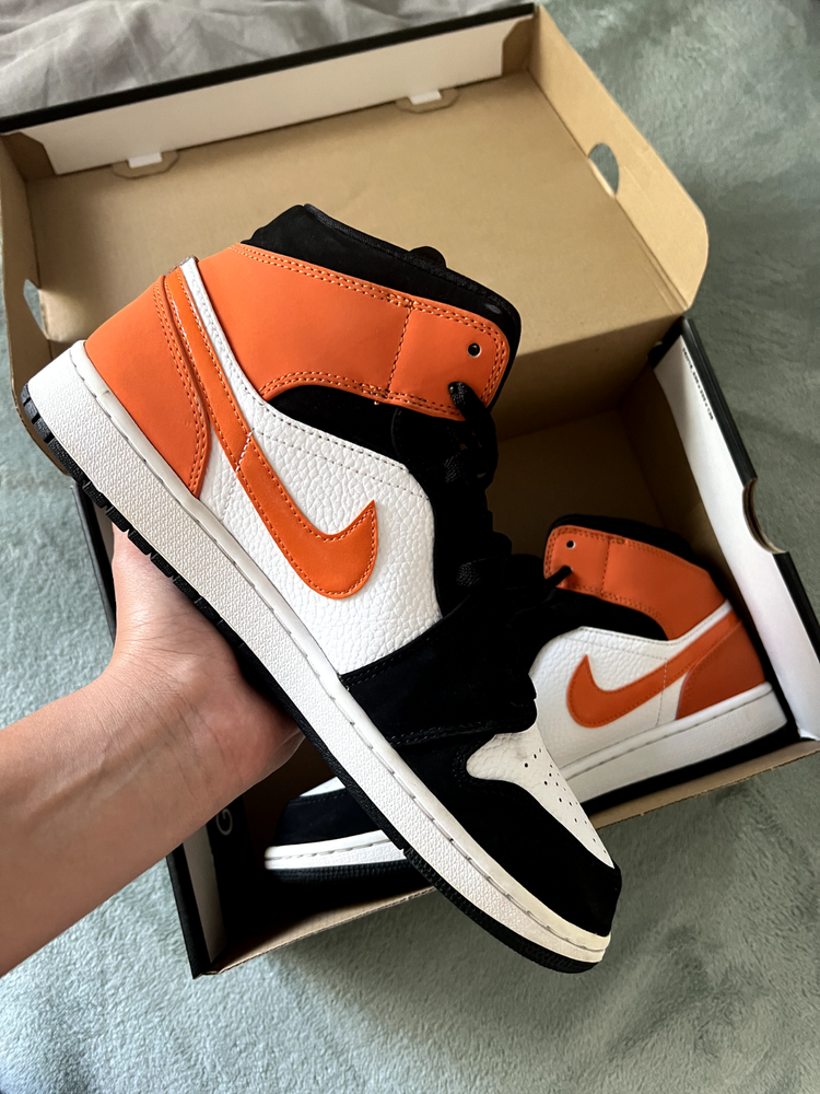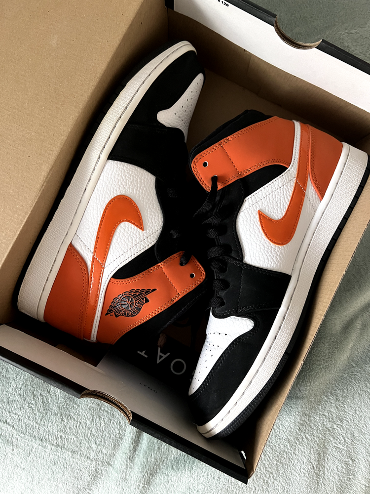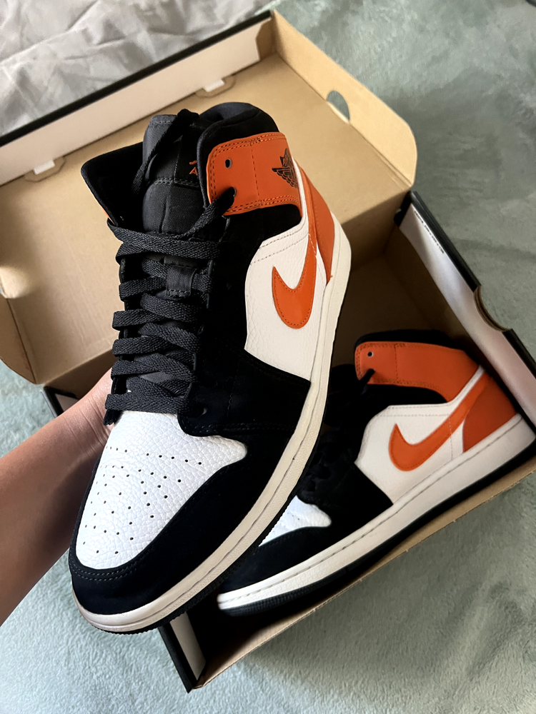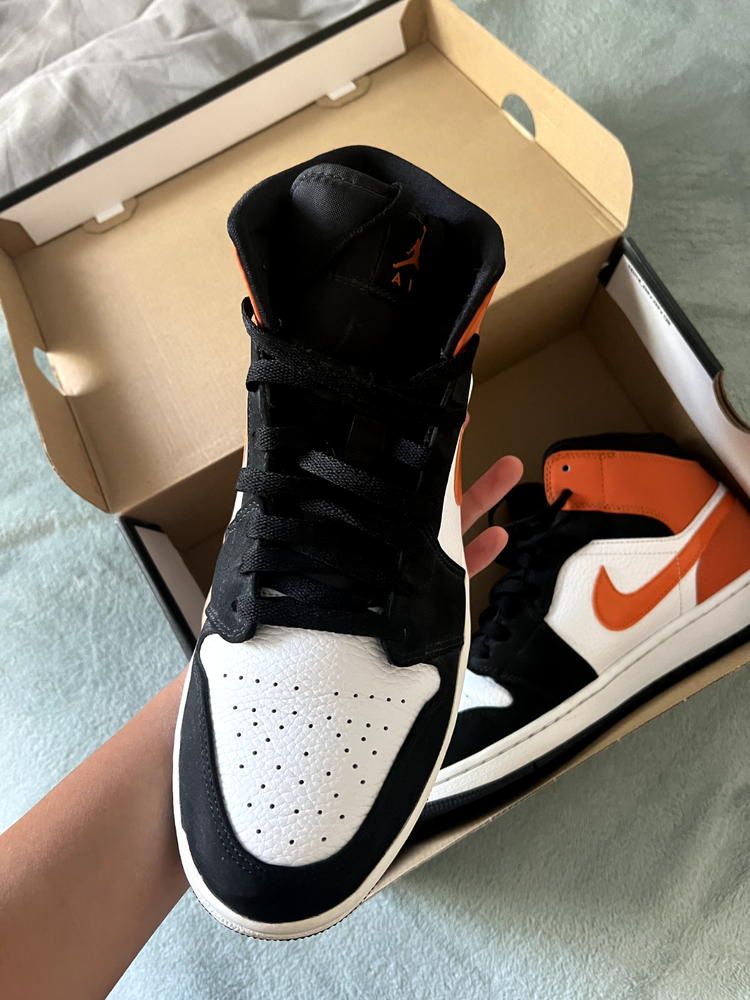 These Jordan 1 Mids are a solid pickup—great color combo with the white, black, and orange pops. They fit true to size (US 10.5) and feel sturdy whether you're rocking them for hoops or streetwear. The condition is clean for pre-owned, and having the original Nike box is a nice touch. Super versatile for men or women, and that classic Air Jordan comfort doesn’t disappoint. Love the retro vibe!