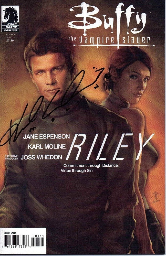 IN STOCK ~ READY TO SHIP AUCTION IS FOR signed 1st print comic book RILEY #1 A (one shot) autographed by artist KARL MOLINE ties in with Buffy the vampire slayer season 8 series. Acclaimed Buffy television writer Jane Espenson is back with answers to one of the surprising twists she and executive producer Joss Whedon introduced in the hit story arc "Retreat"! In the midst of the battle, Buffy's former flame, the demon fighting soldier Riley Finn, seemingly in league with Twilight, was revealed as a double agent working for the Slayer army. Now Espenson and artist Karl Moline (Fray, Willow) uncover the secrets of Riley's recruitment by Buffy, his infiltration of Twilight's inner circle, and what's become of him and his superspy wife, Sam. This essential one shot delivers thrilling spy adventure and is filled with major revelations for the story of Buffy Season Eight! CONDITION: NM ALL COMICS COME BAGGED AND BOARDED SIGNED COMICS COME WITH OUR OWN C.O.A. This is for AVERAGE SIZED COMICS, thicker comics may count as 2 or 3 depending on number of pages/thickness. Shipping covers USPS fees, handling helps pay for BAGS/BOARDS, PACKING TAPE, CARDBOARD, BUBBLE WRAP, INK, and PAPER... MAIL GOES OUT TWICE A WEEK, PLEASE ALLOW 3-5 BUSINESS DAYS FOR YOUR ITEM TO BE PROCESSED PLUS USPS SHIPPING TIME. WE ARE NOT RESPONSIBLE FOR ANY ITEMS LOST OR STOLEN ONCE SHIPMENT IS MADE, WE WILL LEAVE FEEDBACK AFTER TRANSACTION IS COMPLETE AND BUYER HAS LEFT US FEEDBACK SO WE KNOW ITEM AS ARRIVED SAFELY. METHODS OF PAYMENT WE ACCEPT PAYPAL. AUCTIONS WILL BE SENT AFTER PAYMENT CLEARS. !!!!! BID WITH CONFIDENCE !!!! WE HAVE BEEN SELLING ON EBAY since 1998 WE HAVE OVER 50,000 POSITIVE FEEDBACK FROM GREAT EBAY CUSTOMERS!! THANK YOU FOR YOUR BUSINESS AND PLEASE CHECK BACK DAILY.