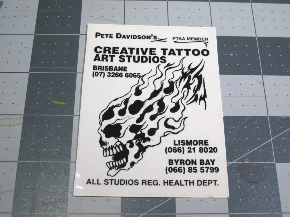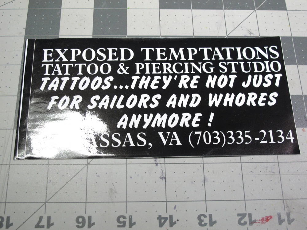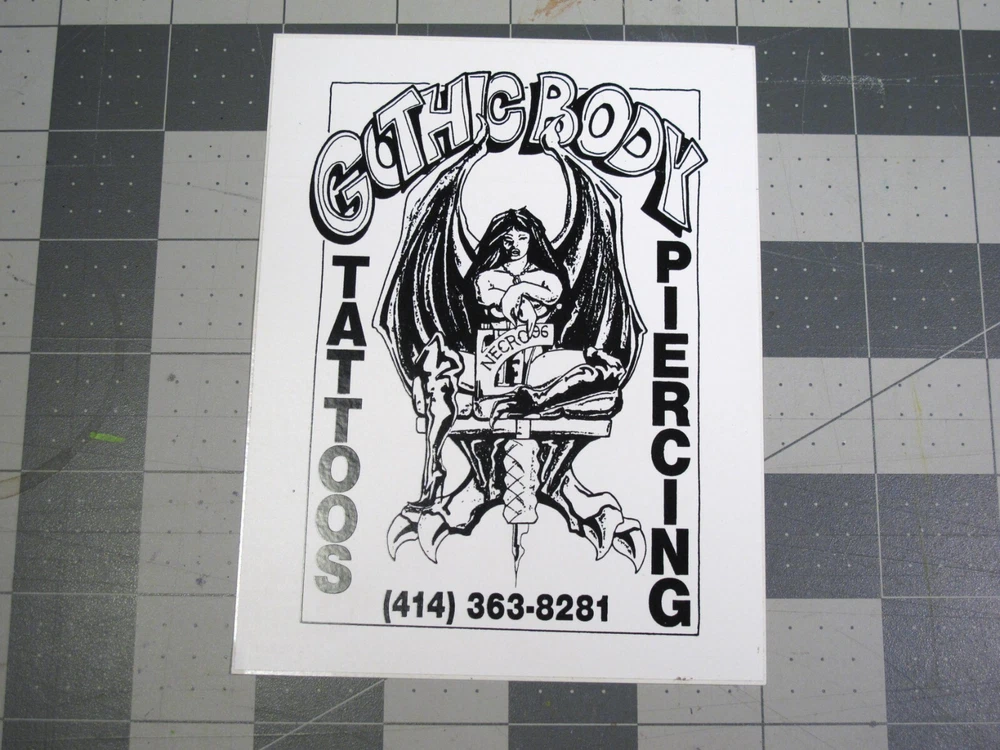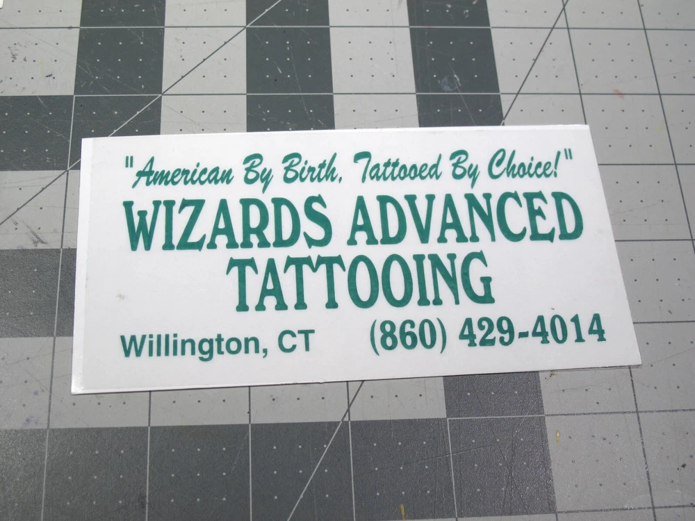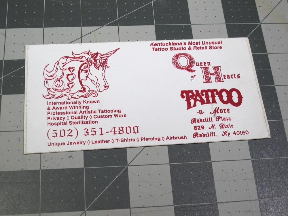 Up for auction is a vintage tattoo artist or company sticker. In pictured condition. Assorted shops and artists. You get ONE sticker which you choose from the drop down menu. Feel free to ask me any questions you need to know and I will definitely hit you back with my best answer. Good luck, and enjoy!